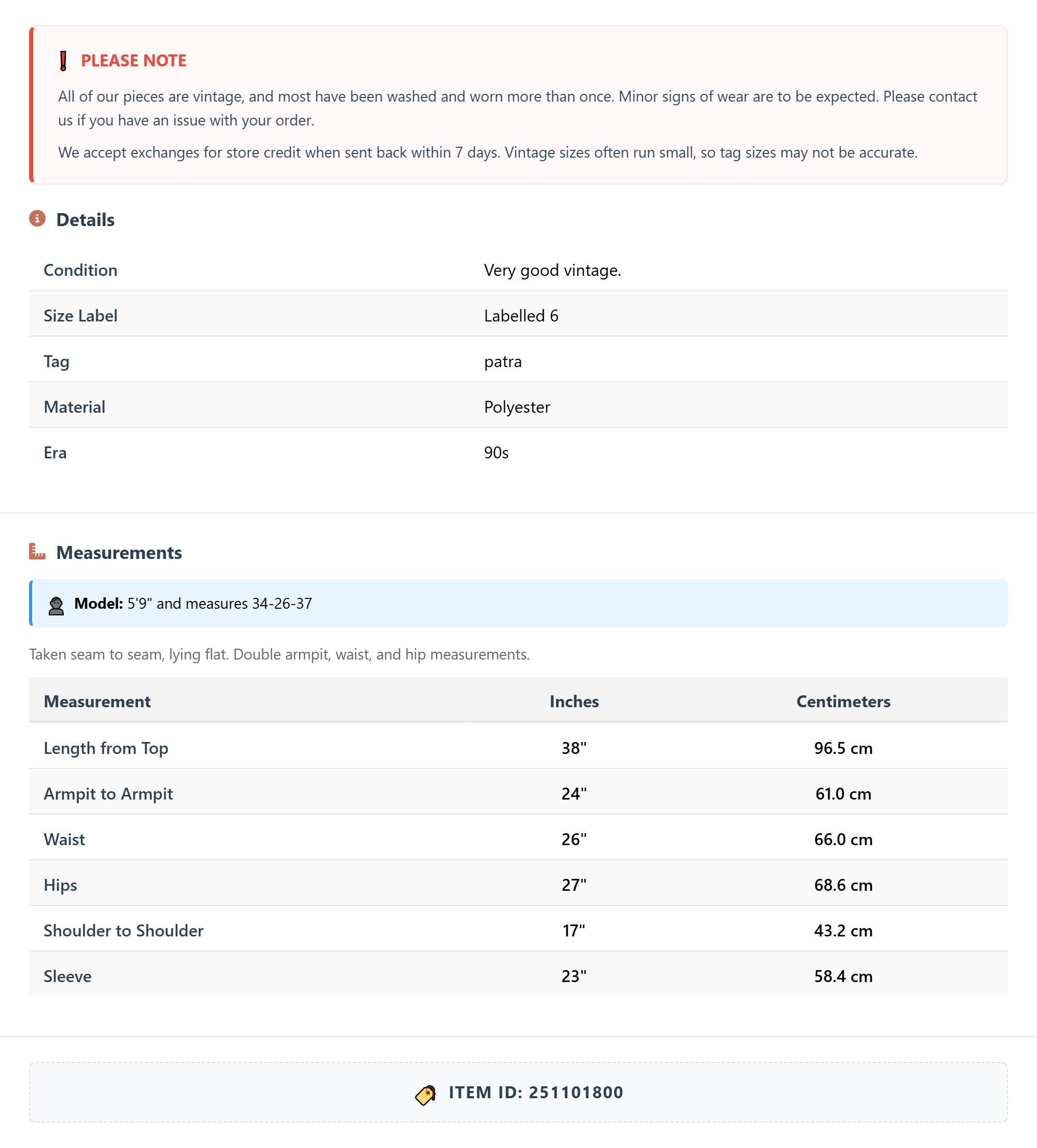 Suggested sizes are estimates only; see measurements for exact sizing. Vintage sizes often run small, so tag sizes may not be accurate.