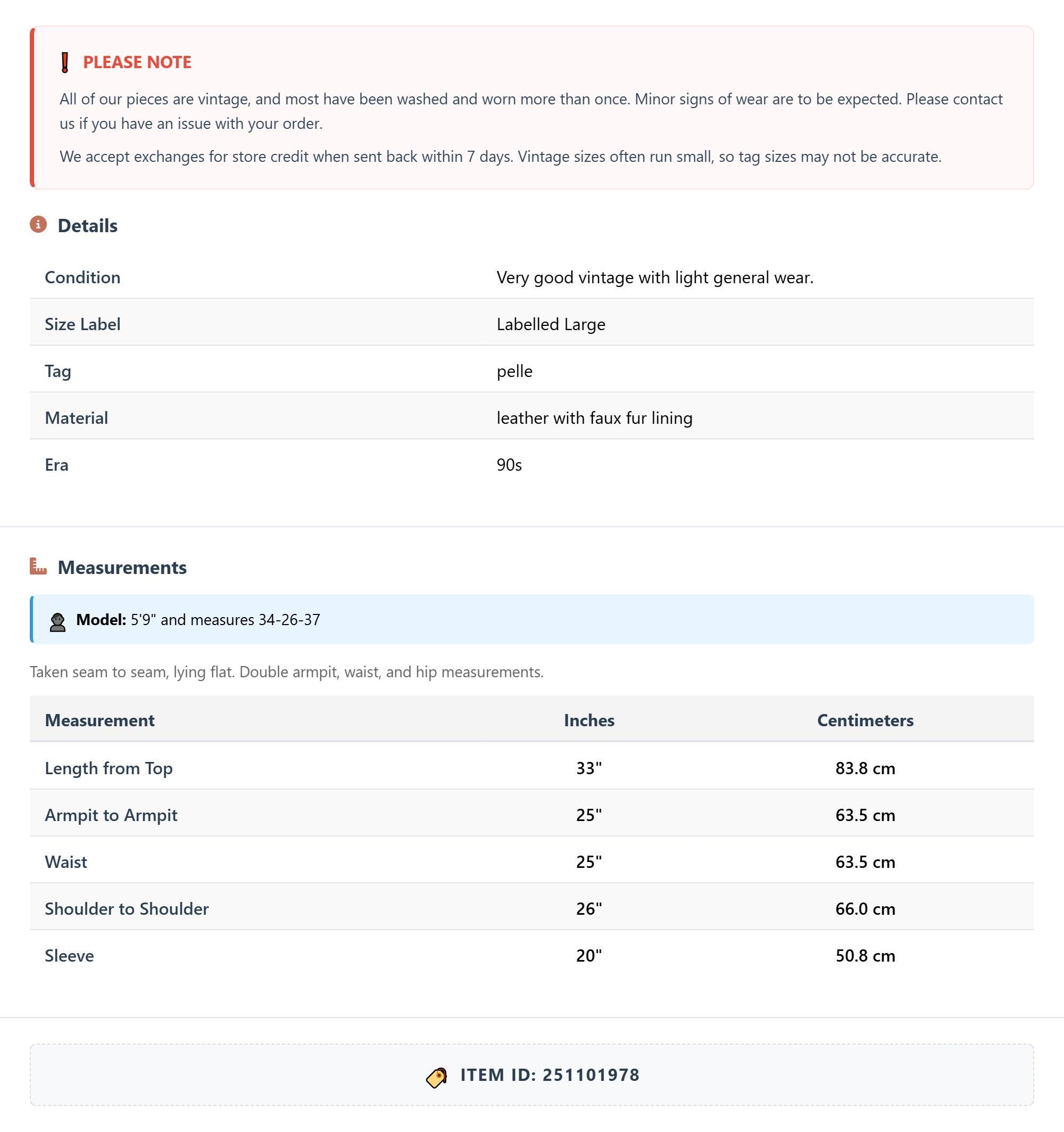 Suggested sizes are estimates only; see measurements for exact sizing. Vintage sizes often run small, so tag sizes may not be accurate.