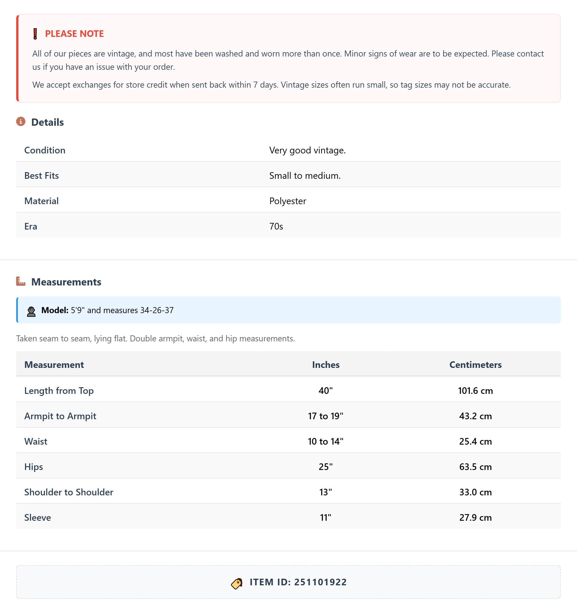 Suggested sizes are estimates only; see measurements for exact sizing. Vintage sizes often run small, so tag sizes may not be accurate.