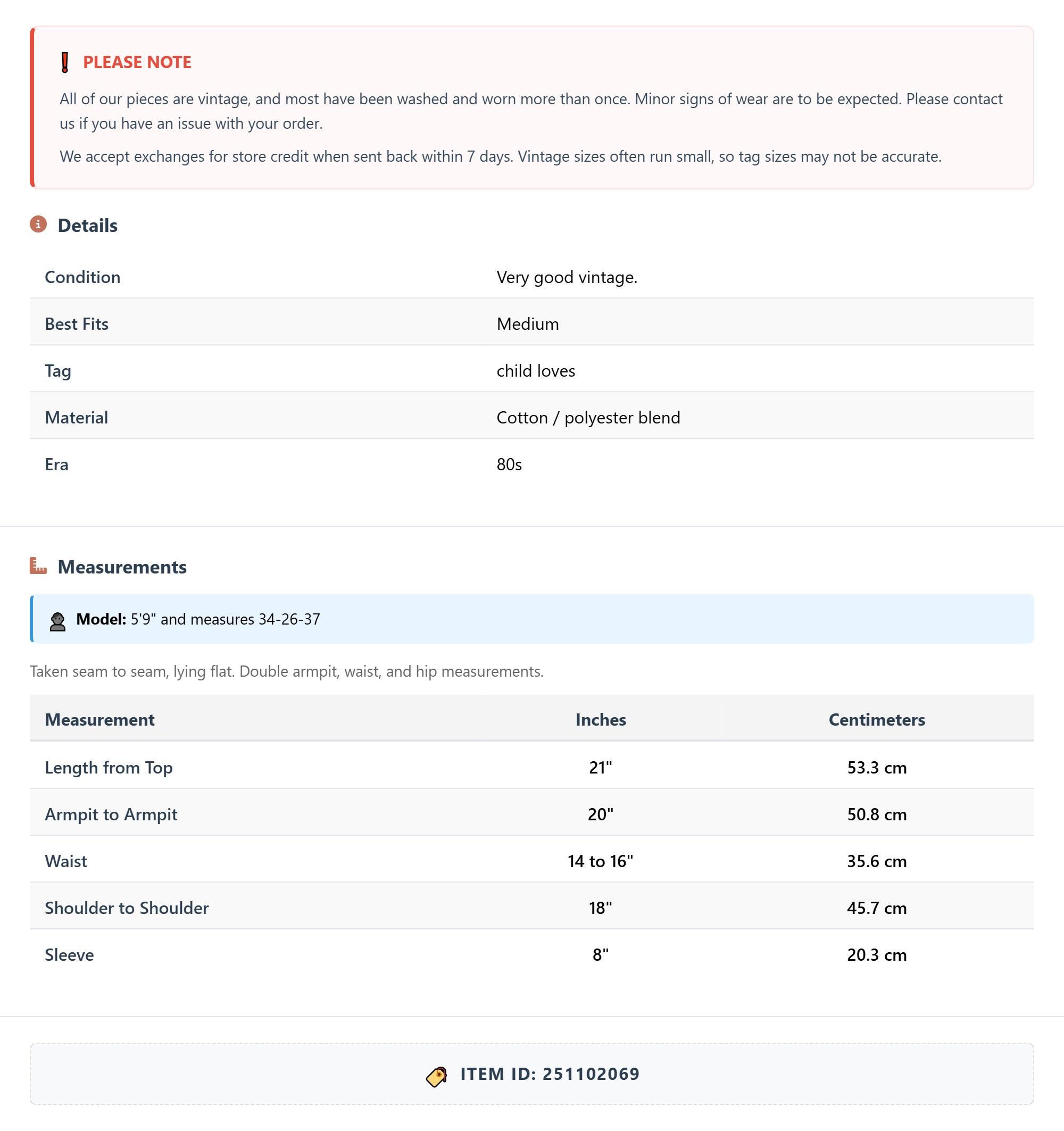 Suggested sizes are estimates only; see measurements for exact sizing. Vintage sizes often run small, so tag sizes may not be accurate.