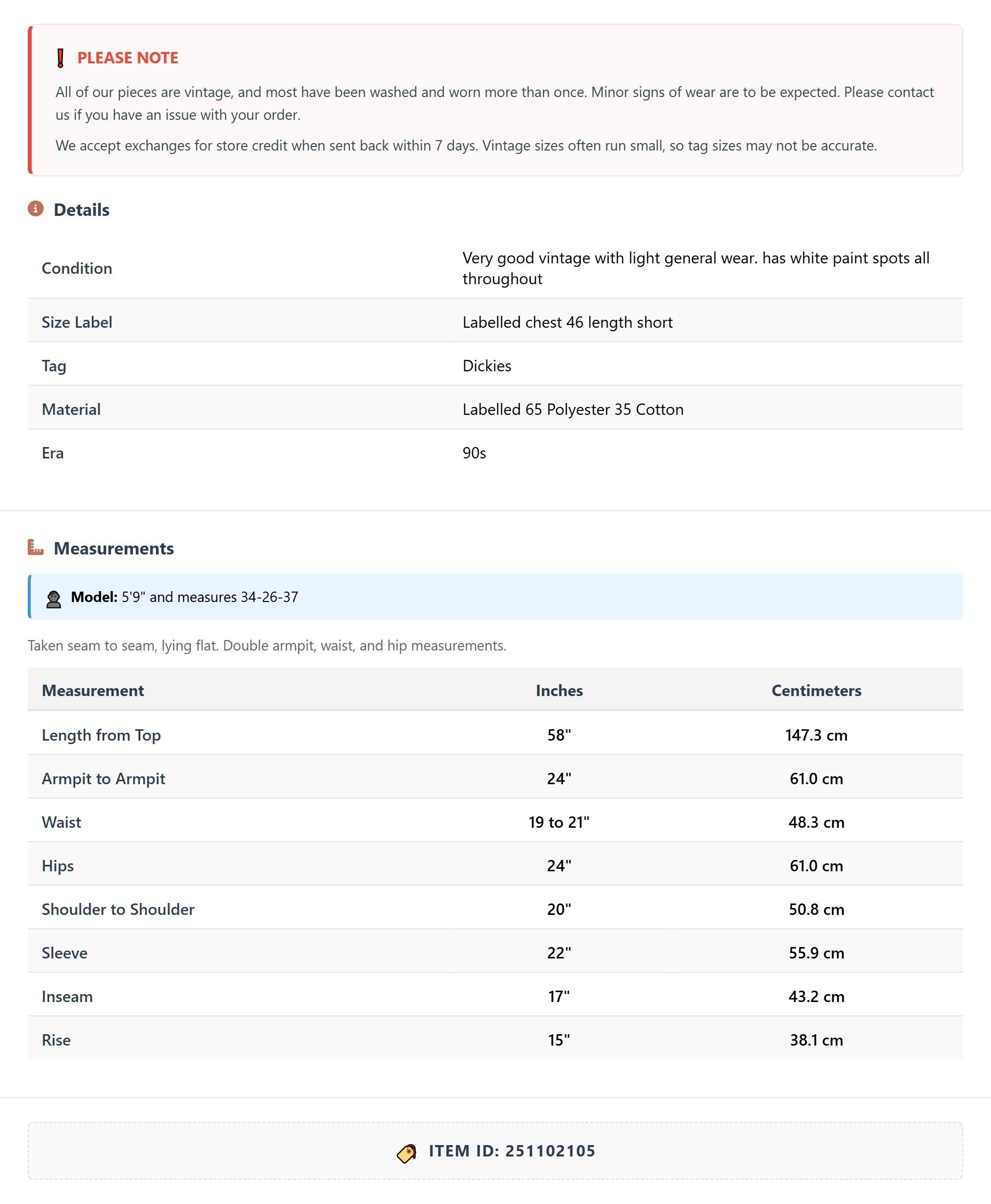 Suggested sizes are estimates only; see measurements for exact sizing. Vintage sizes often run small, so tag sizes may not be accurate.