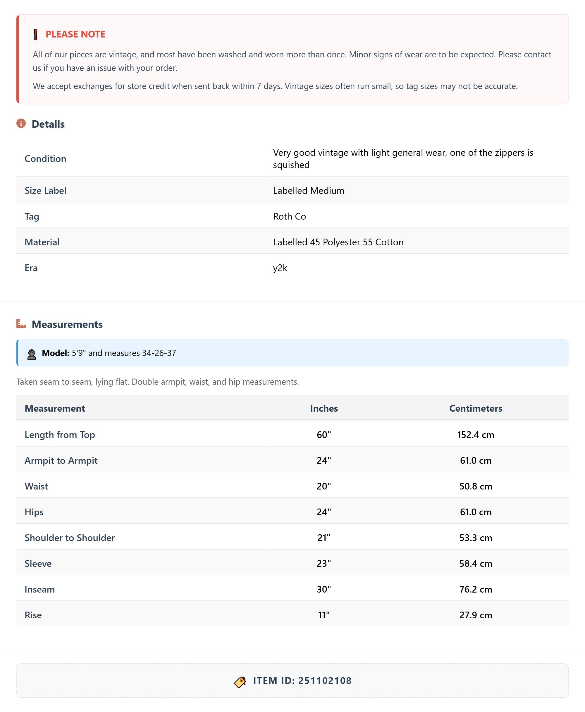 Suggested sizes are estimates only; see measurements for exact sizing. Vintage sizes often run small, so tag sizes may not be accurate.