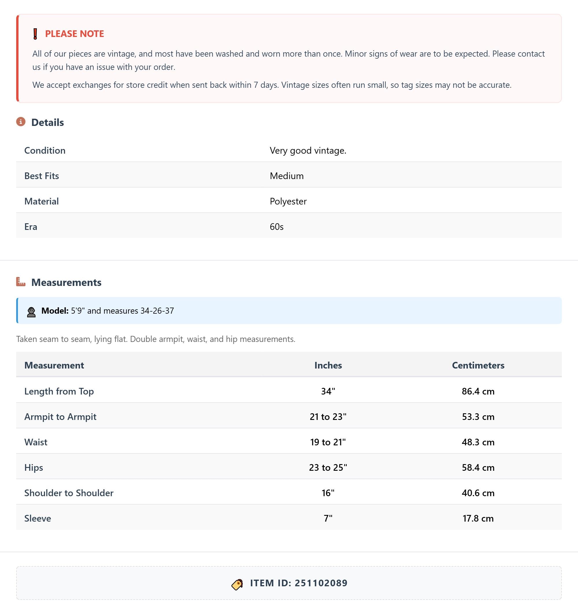 Suggested sizes are estimates only; see measurements for exact sizing. Vintage sizes often run small, so tag sizes may not be accurate.