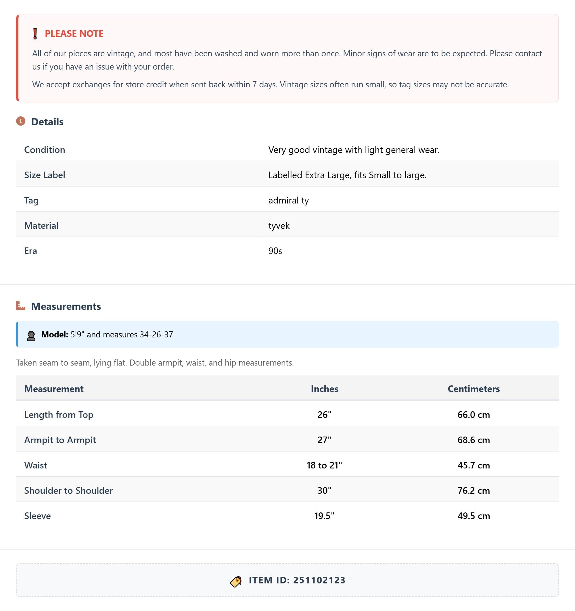 Suggested sizes are estimates only; see measurements for exact sizing. Vintage sizes often run small, so tag sizes may not be accurate.