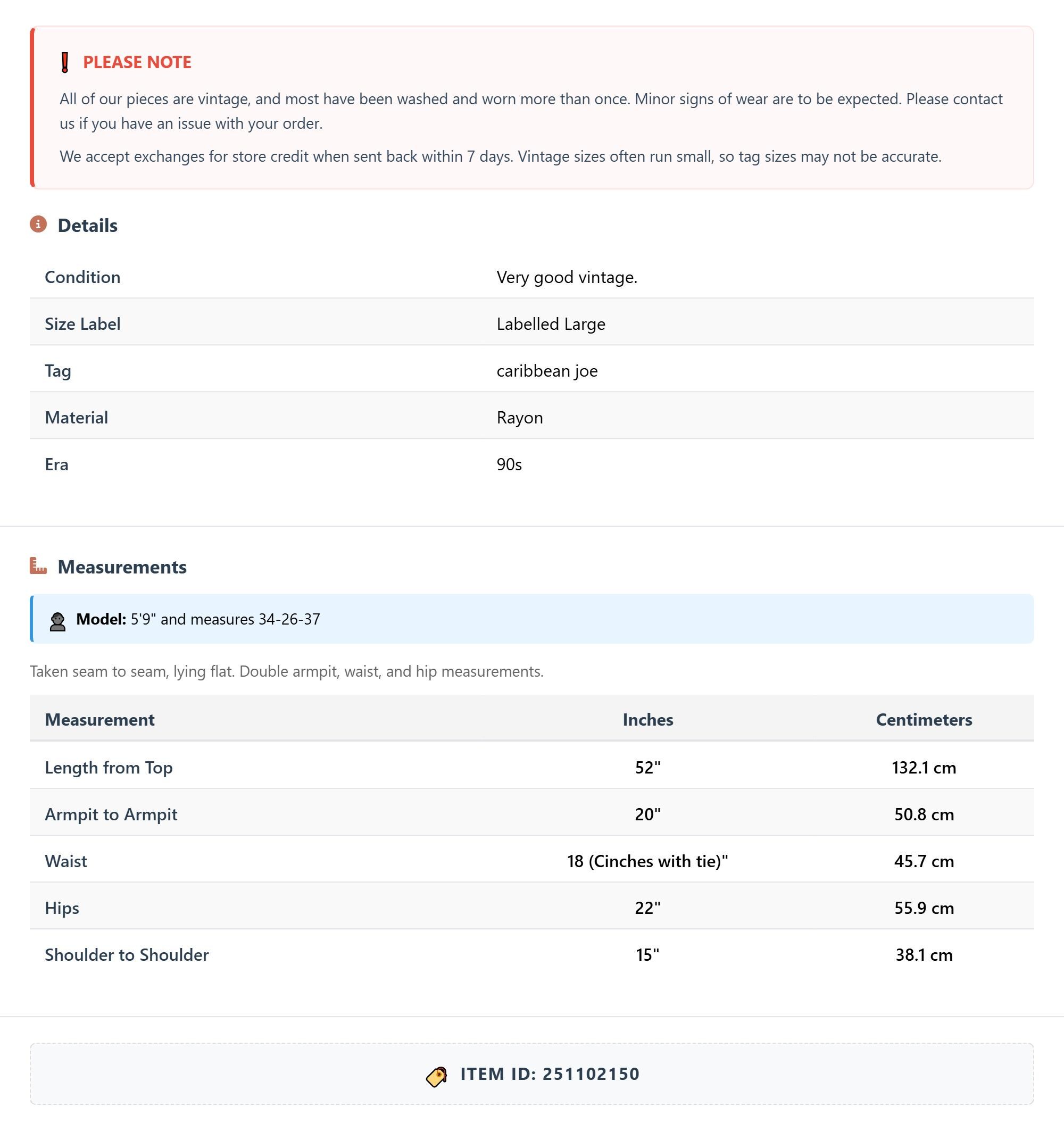 Suggested sizes are estimates only; see measurements for exact sizing. Vintage sizes often run small, so tag sizes may not be accurate.