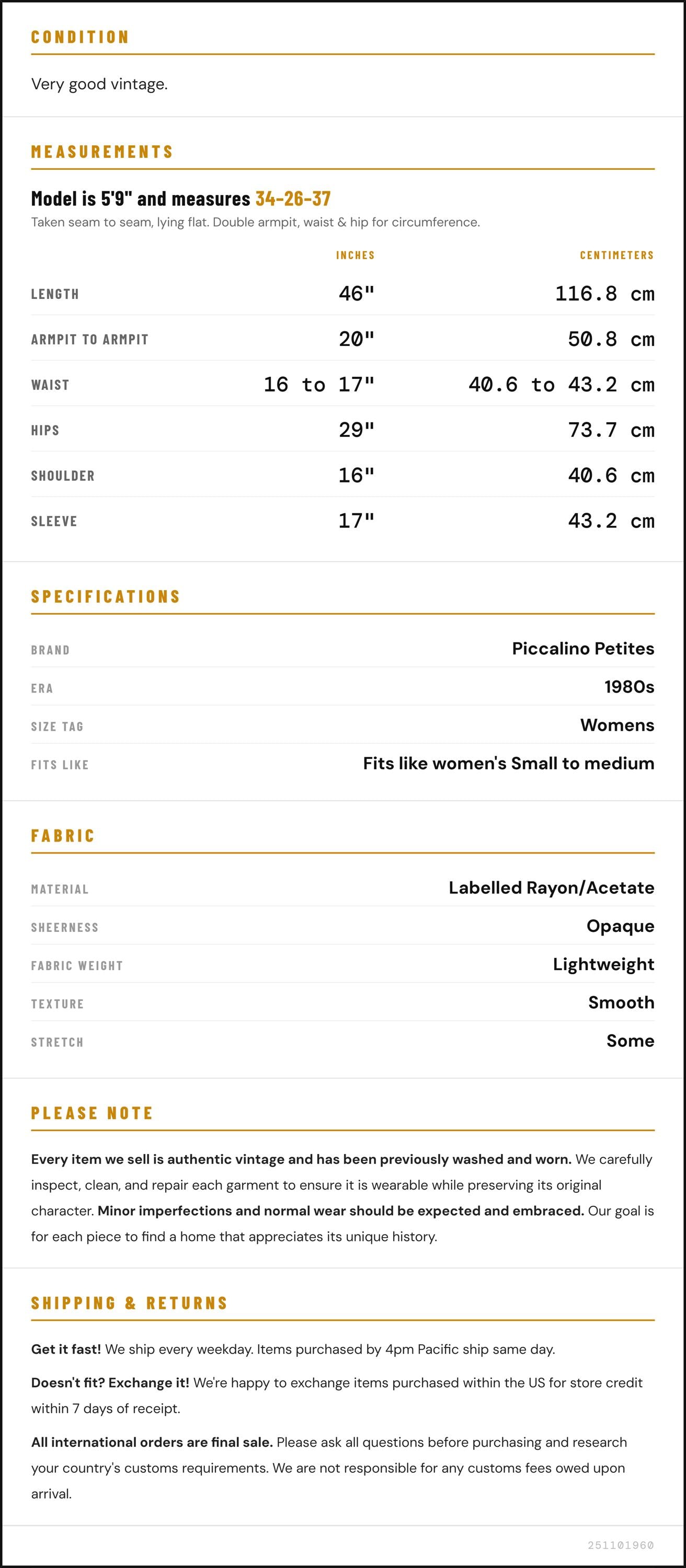 ✨ Please see measurements and condition below. Every garment we sell is authentic vintage and one-of-a-kind! You will receive the exact item photographed.