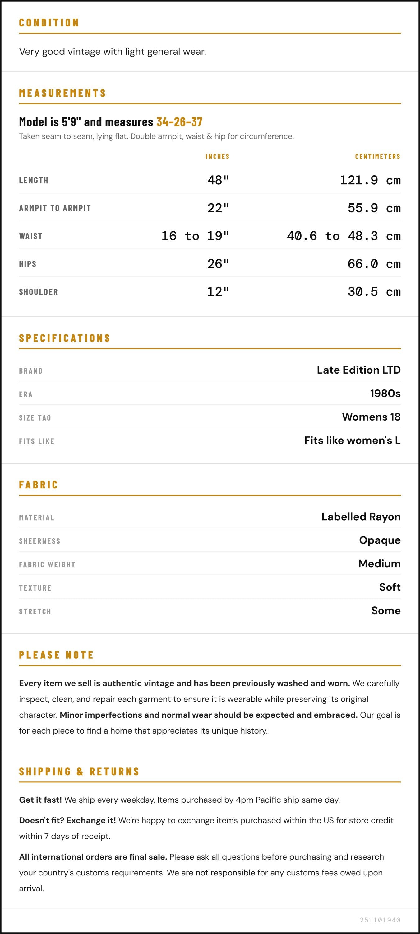 ✨ Please see measurements and condition below. Every garment we sell is authentic vintage and one-of-a-kind! You will receive the exact item photographed.