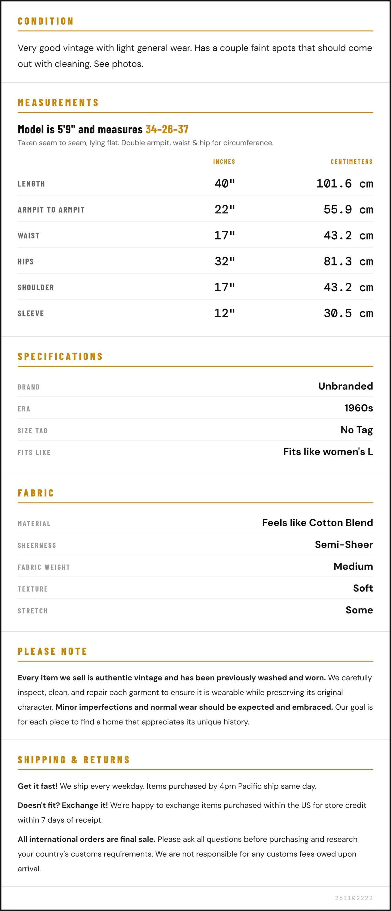 ✨ Please see measurements and condition below. Every garment we sell is authentic vintage and one-of-a-kind! You will receive the exact item photographed.