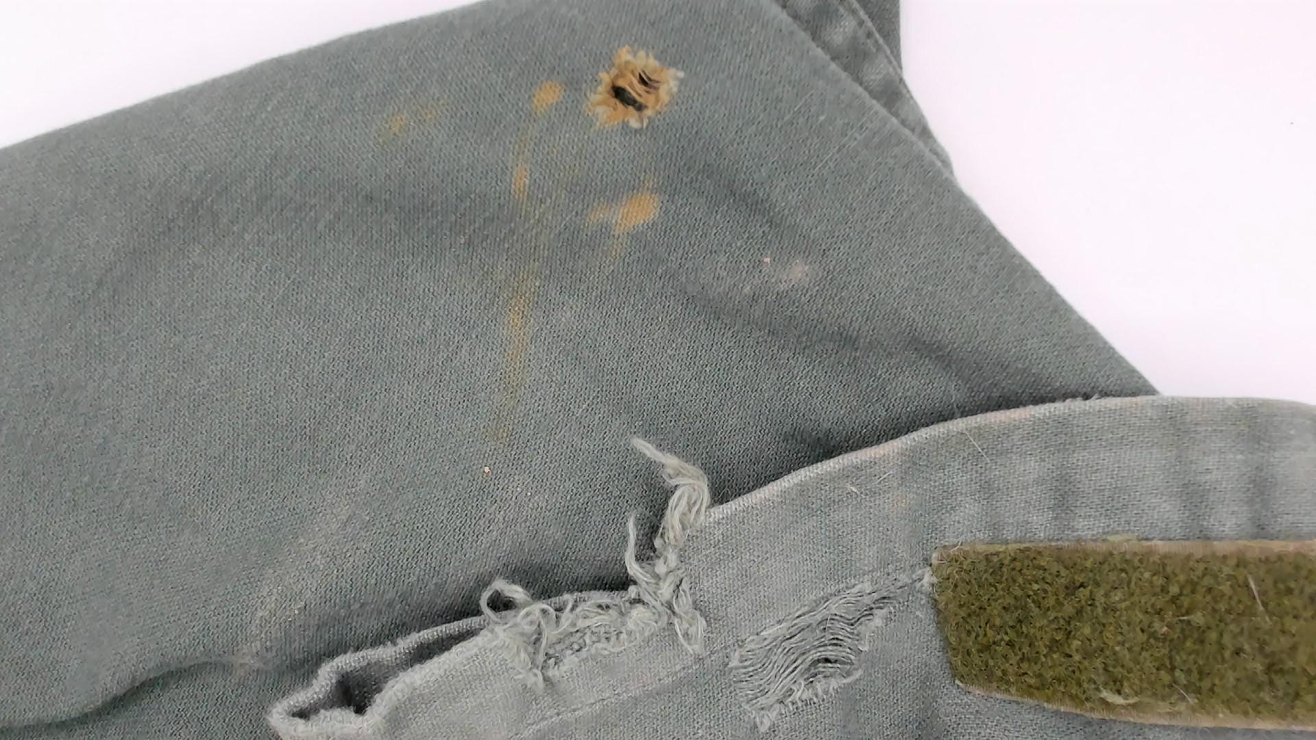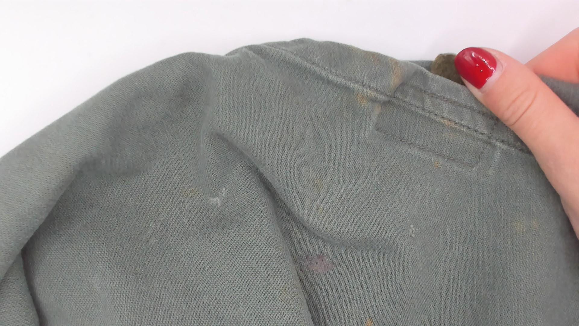 Condition: Lightly distressed. Has a couple faint spots that should come out with cleaning. Has some staining. Has a small hole. Has some fraying. See photos.