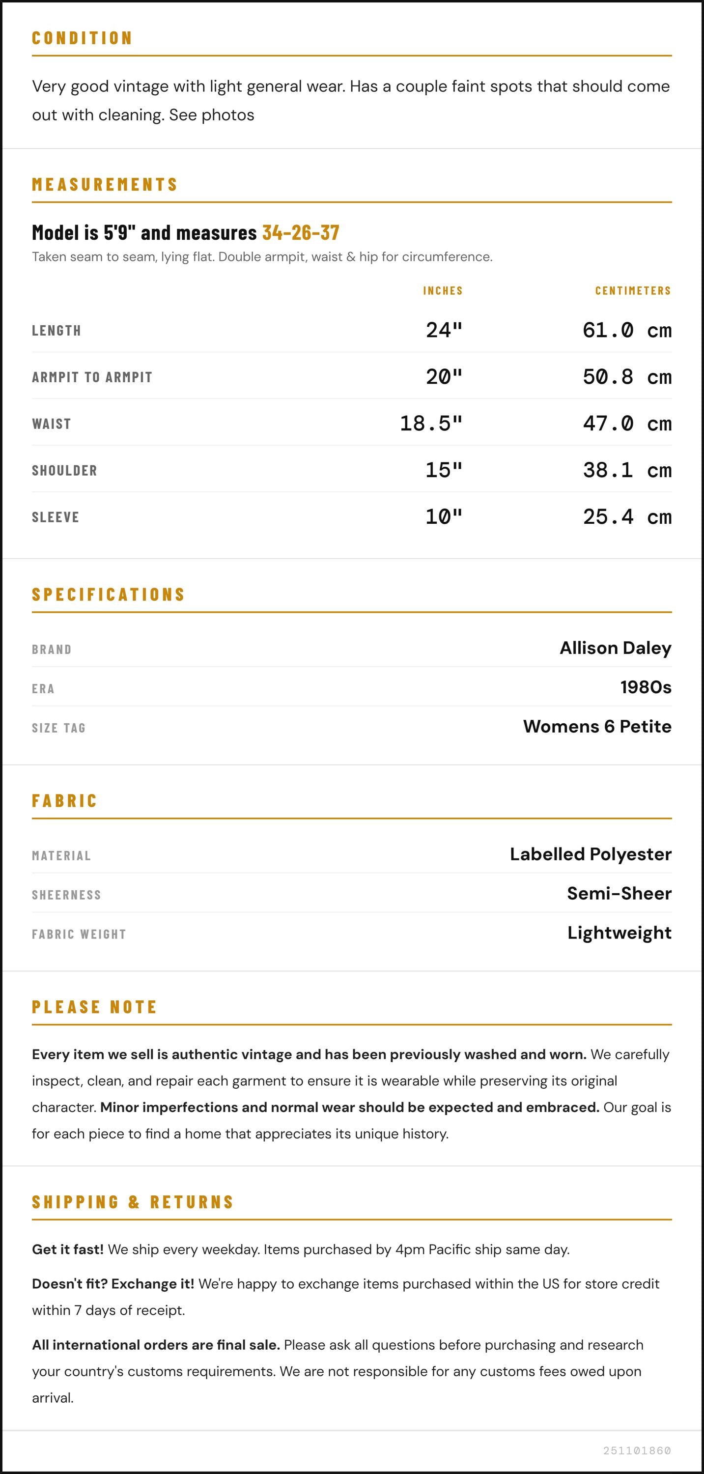 ✨ Please see measurements and condition below. Every garment we sell is authentic vintage and one-of-a-kind! You will receive the exact item photographed.