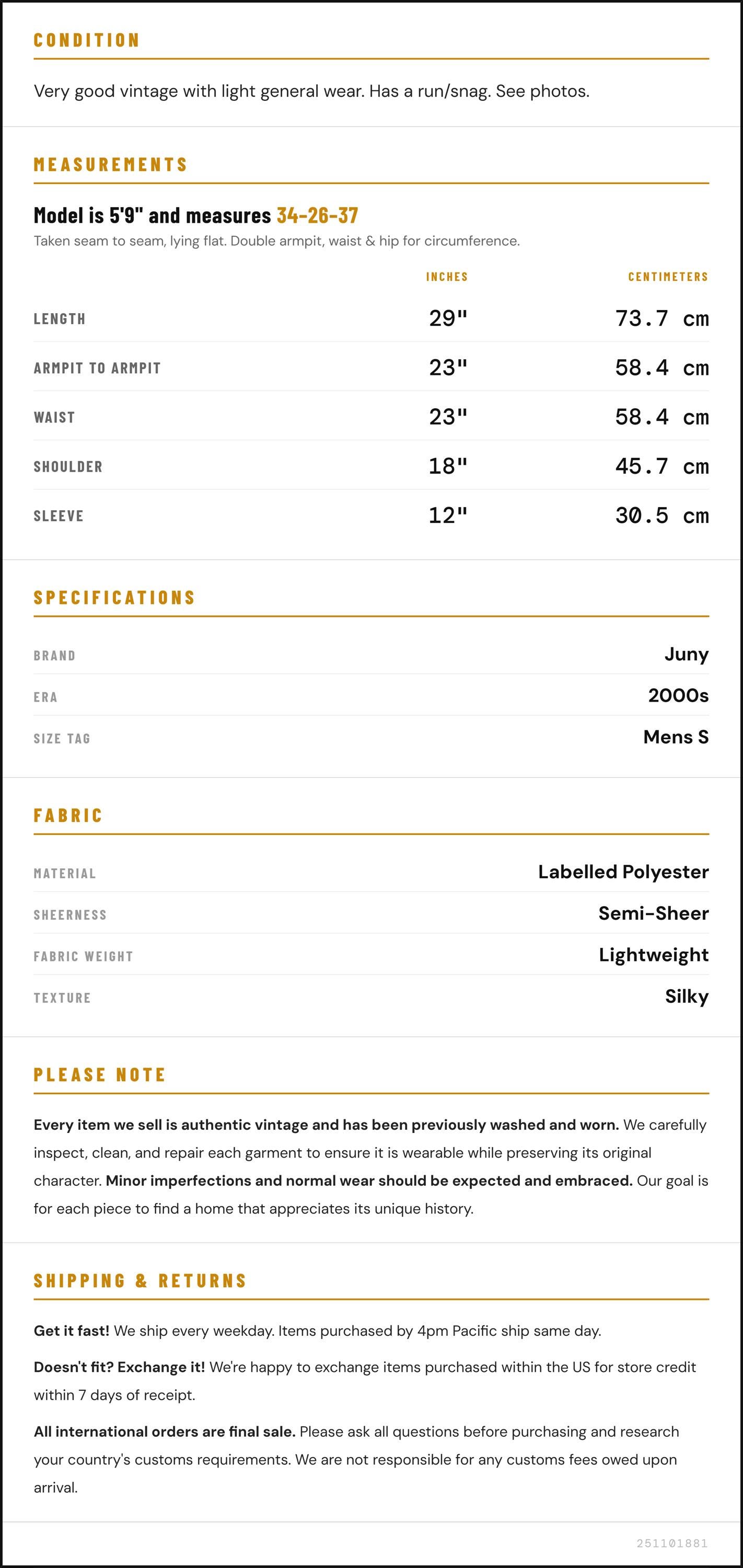 ✨ Please see measurements and condition below. Every garment we sell is authentic vintage and one-of-a-kind! You will receive the exact item photographed.