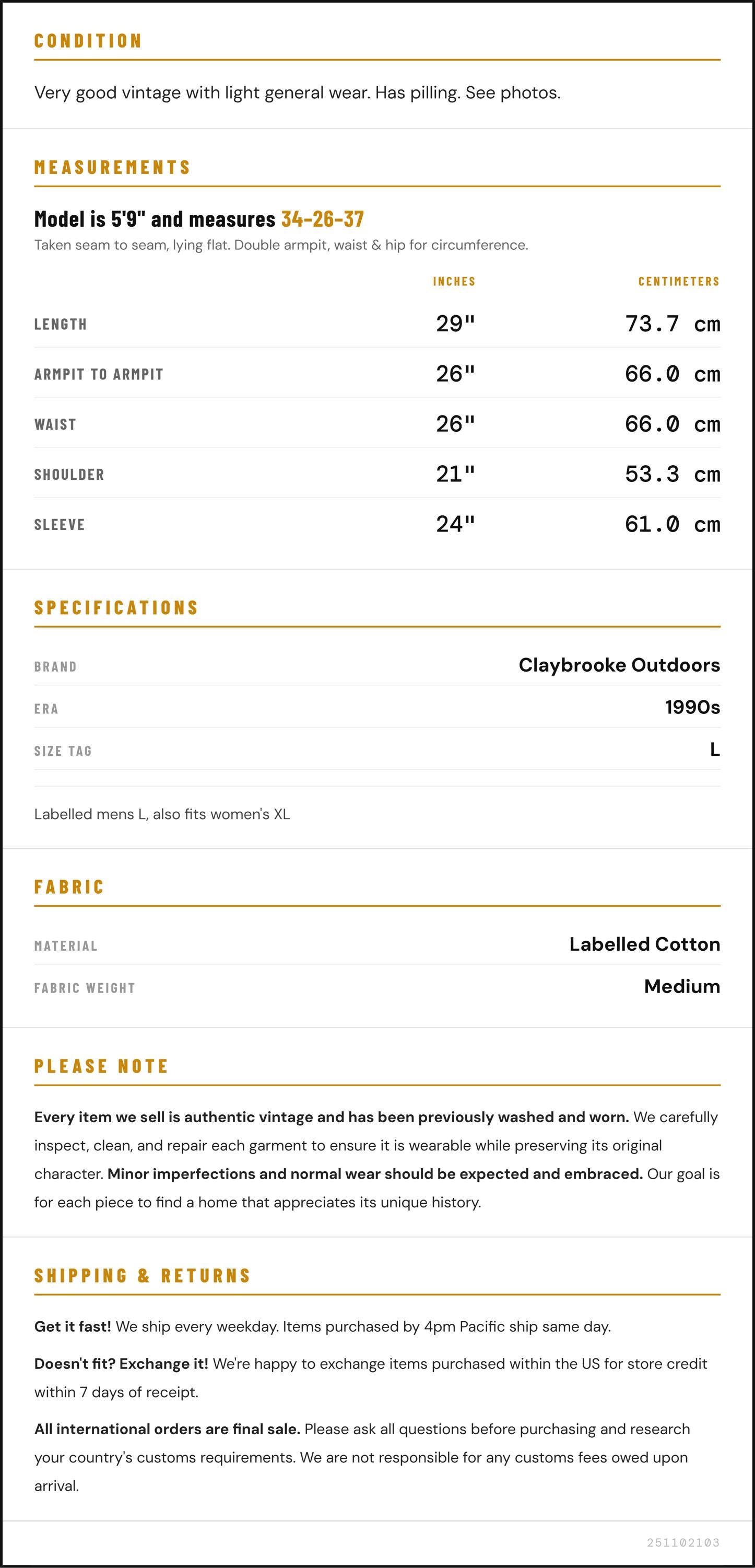 Condition: Very good vintage with light general wear. Has pilling. See photos.