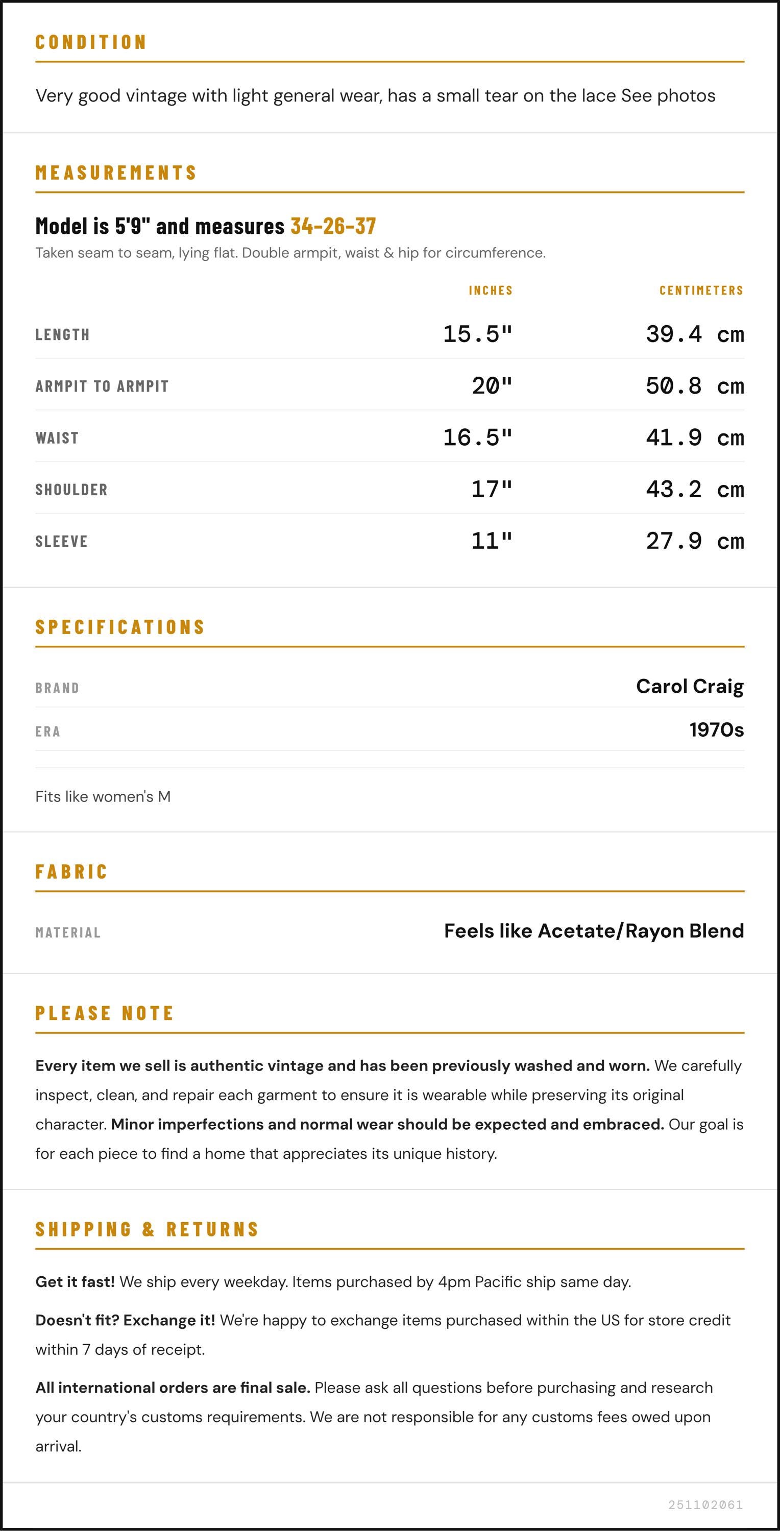 ✨ Please see measurements and condition below. Every garment we sell is authentic vintage and one-of-a-kind! You will receive the exact item photographed.