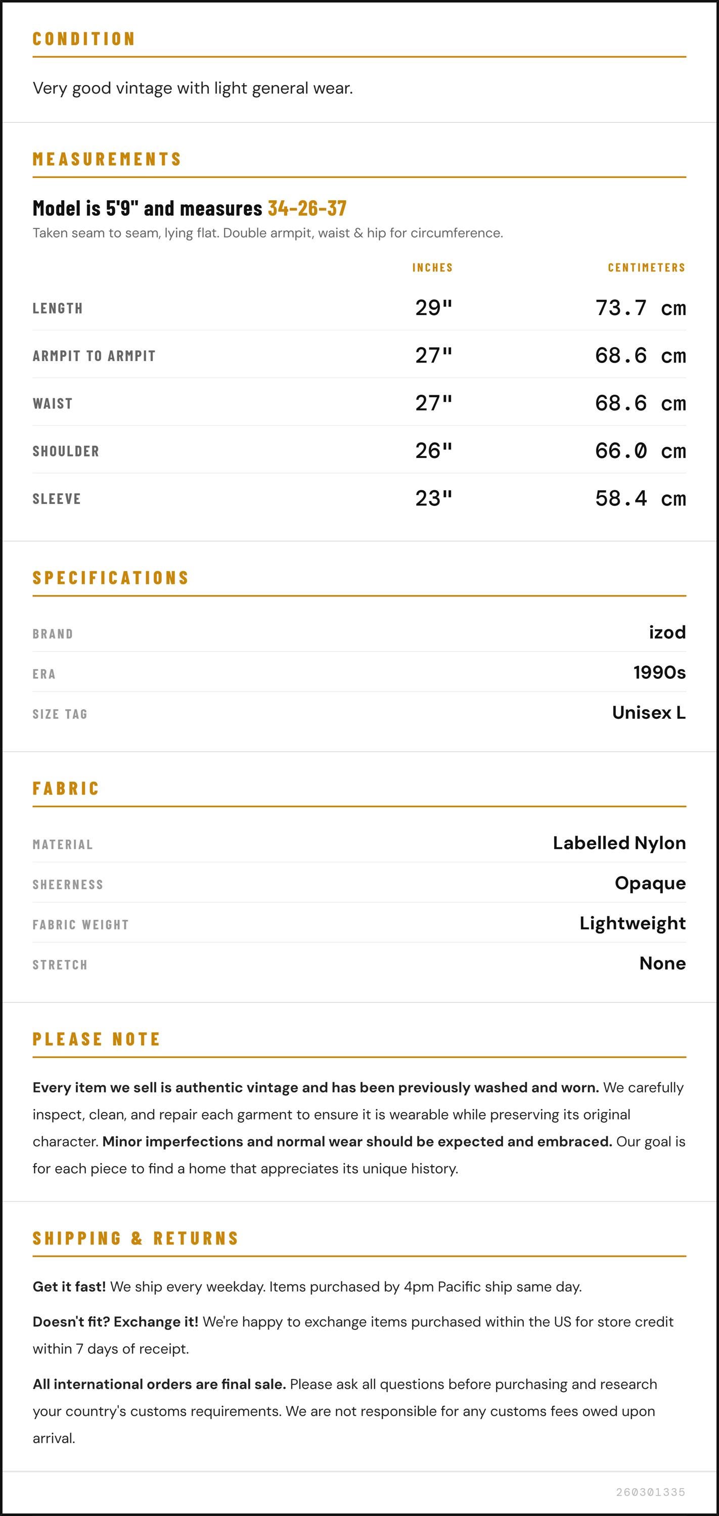 Sleeve: 23" / 58.4 cm