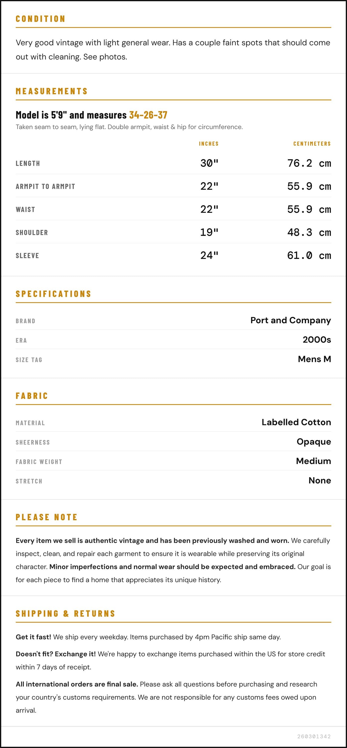 Measurements are taken laying flat and should be doubled where applicable. The "best fits" size is just an estimate, and vintage sizing can vary from modern sizing. Please use measurements to ensure proper fit. The best thing to do is measure a similar item of your own, and compare. When an item has stretch, we will list the unstretched dimensions with the stretched measurement afterwards.