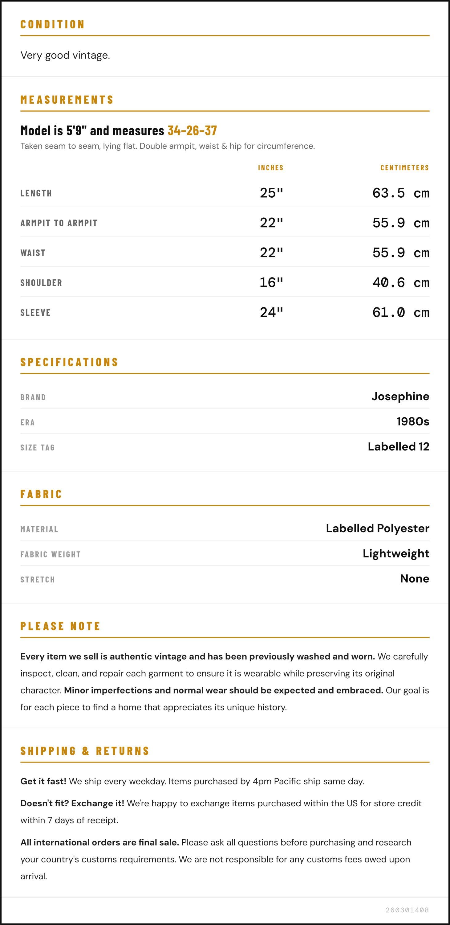 ✨ Please see measurements and condition below. Every garment we sell is authentic vintage and one-of-a-kind! You will receive the exact item photographed.