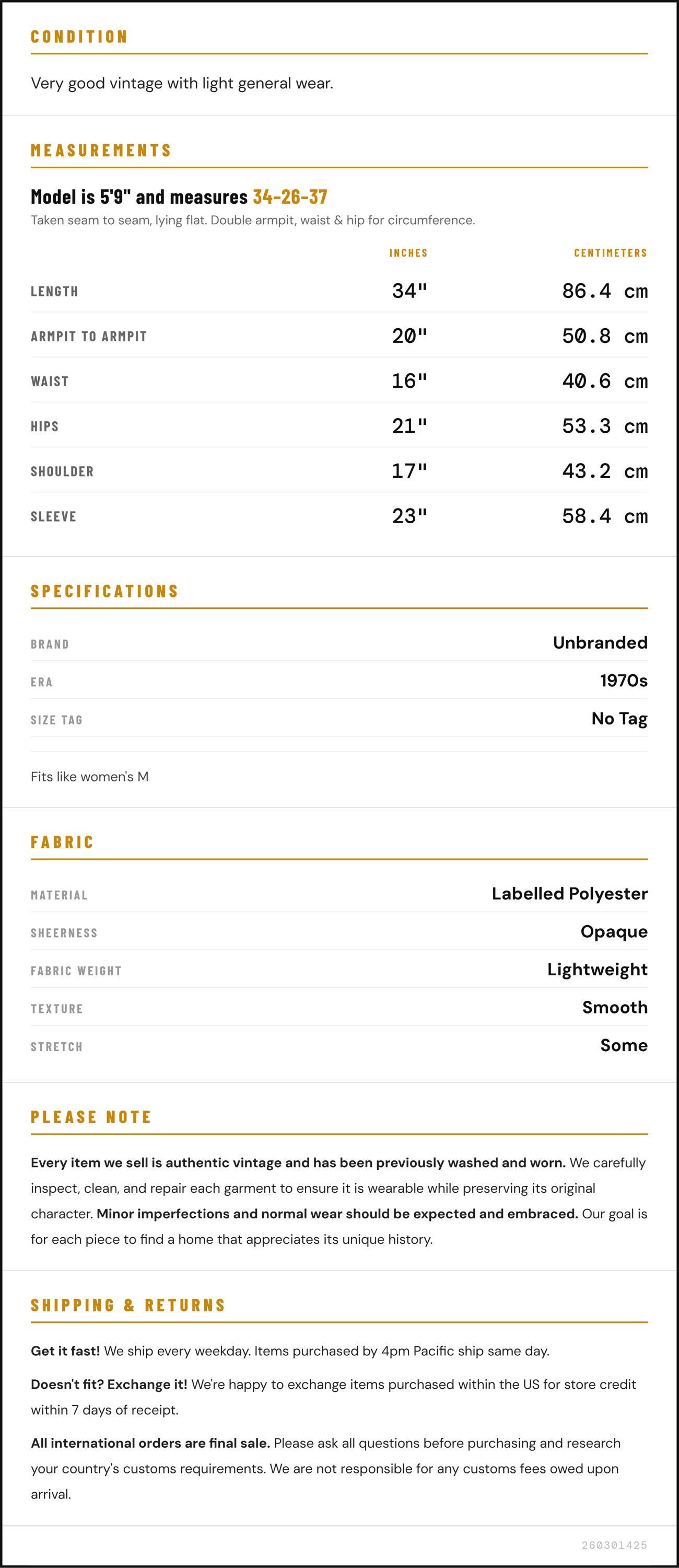 ✨ Please see measurements and condition below. Every garment we sell is authentic vintage and one-of-a-kind! You will receive the exact item photographed.