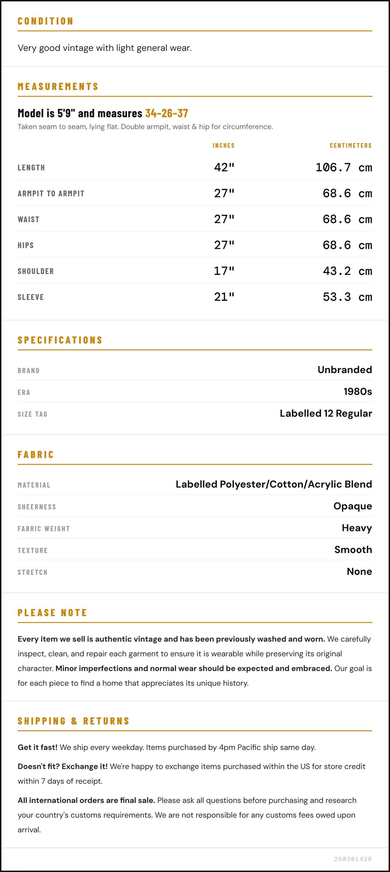 ✨ Please see measurements and condition below. Every garment we sell is authentic vintage and one-of-a-kind! You will receive the exact item photographed.