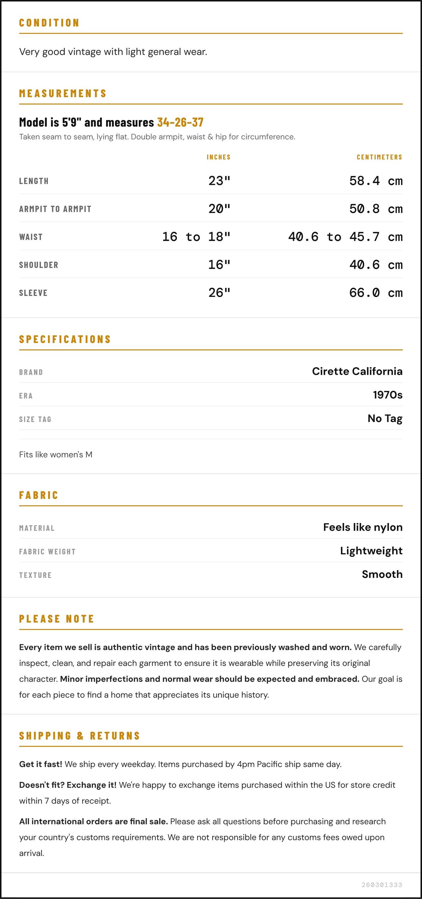 ✨ Please see measurements and condition below. Every garment we sell is authentic vintage and one-of-a-kind! You will receive the exact item photographed.