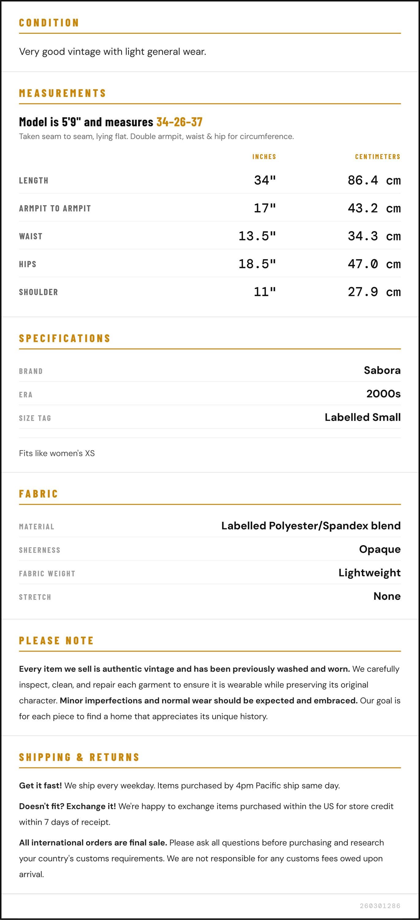 Measurements are taken laying flat and should be doubled where applicable. The "best fits" size is just an estimate, and vintage sizing can vary from modern sizing. Please use measurements to ensure proper fit. The best thing to do is measure a similar item of your own, and compare. When an item has stretch, we will list the unstretched dimensions with the stretched measurement afterwards.