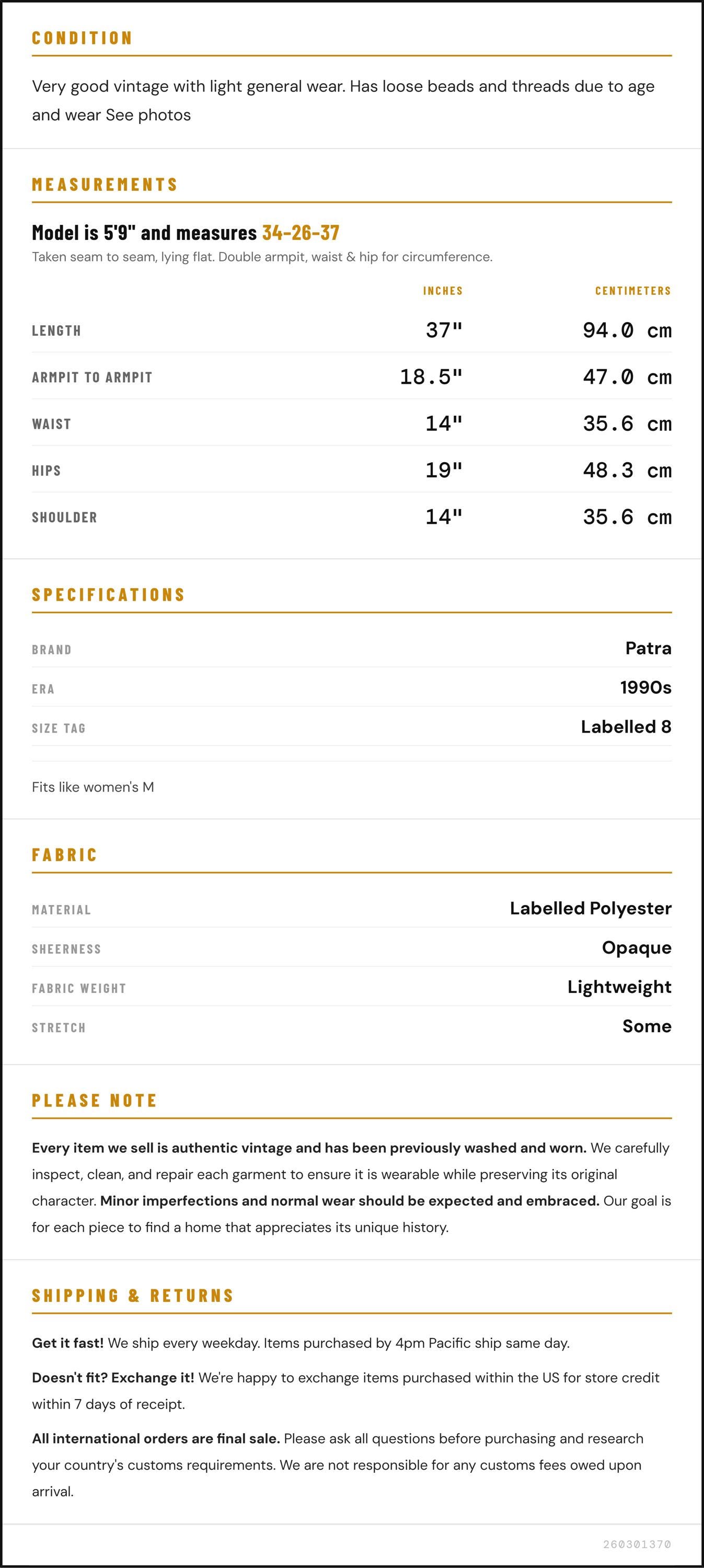 ✨ Please see measurements and condition below. Every garment we sell is authentic vintage and one-of-a-kind! You will receive the exact item photographed.