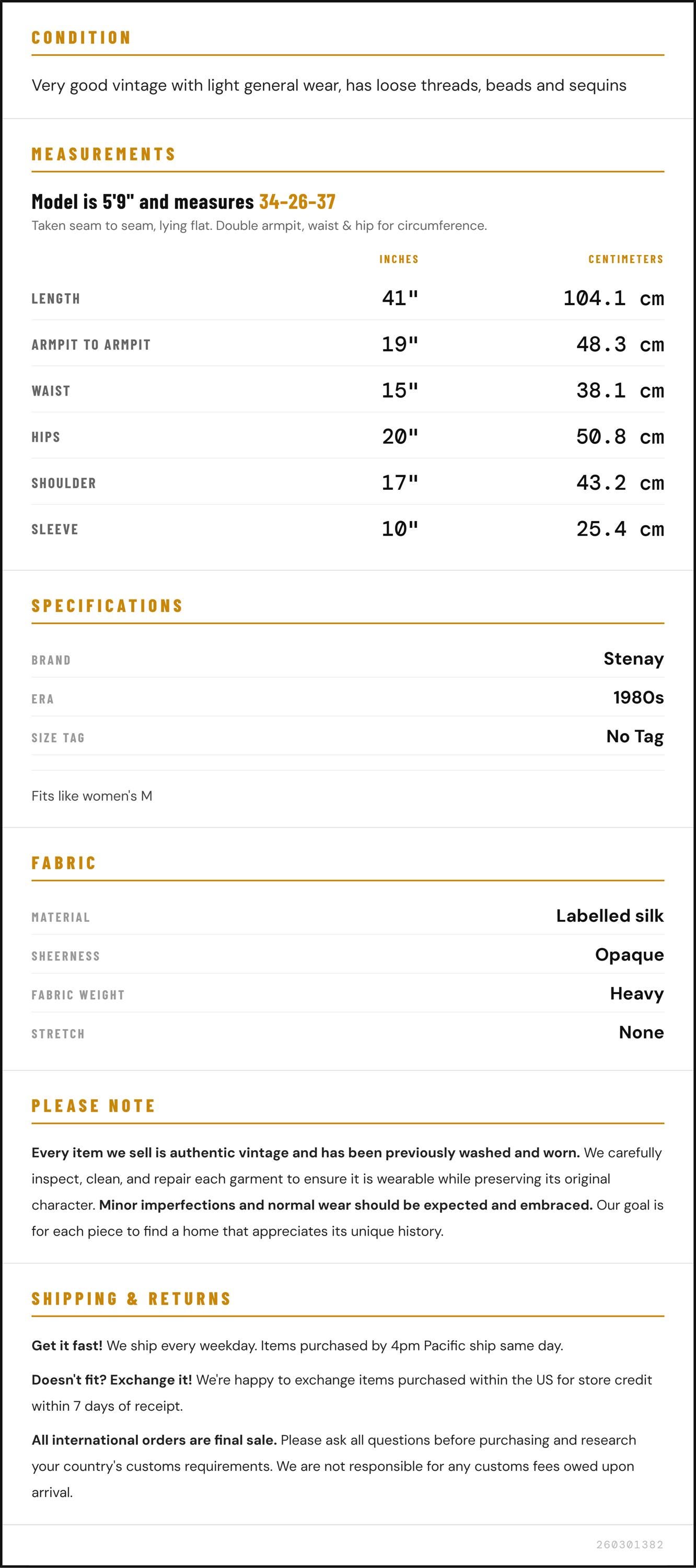 Condition: Very good vintage with light general wear, has loose threads, beads and sequins