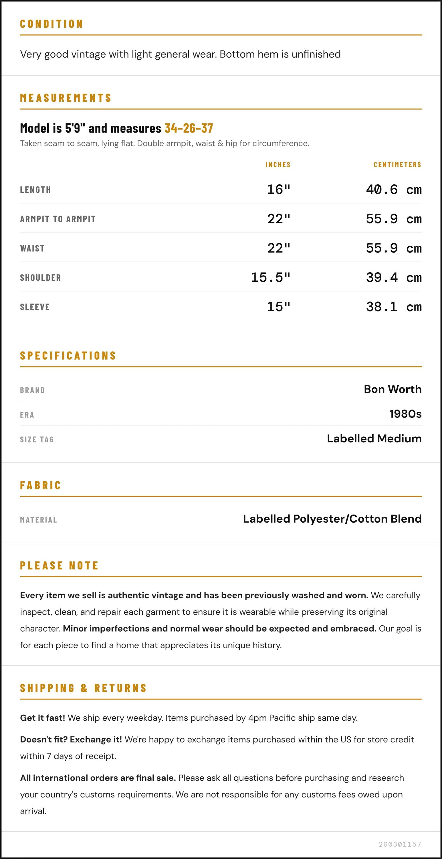 ✨ Please see measurements and condition below. Every garment we sell is authentic vintage and one-of-a-kind! You will receive the exact item photographed.