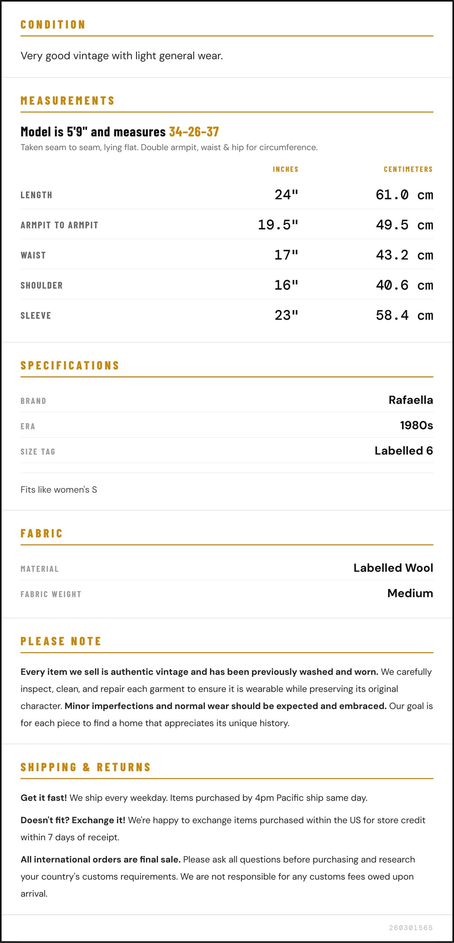 ✨ Please see measurements and condition below. Every garment we sell is authentic vintage and one-of-a-kind! You will receive the exact item photographed.