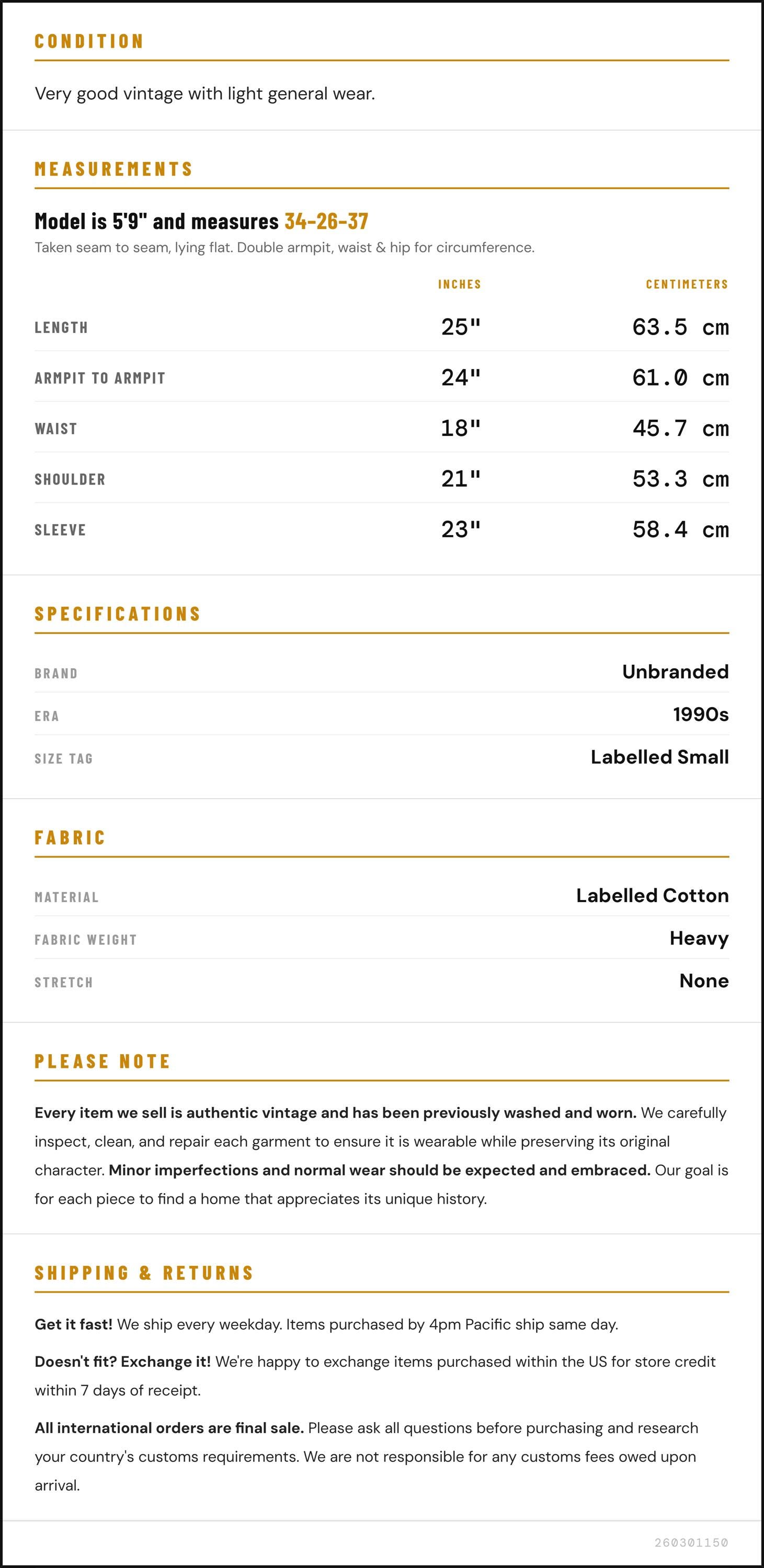 ✨ Please see measurements and condition below. Every garment we sell is authentic vintage and one-of-a-kind! You will receive the exact item photographed.