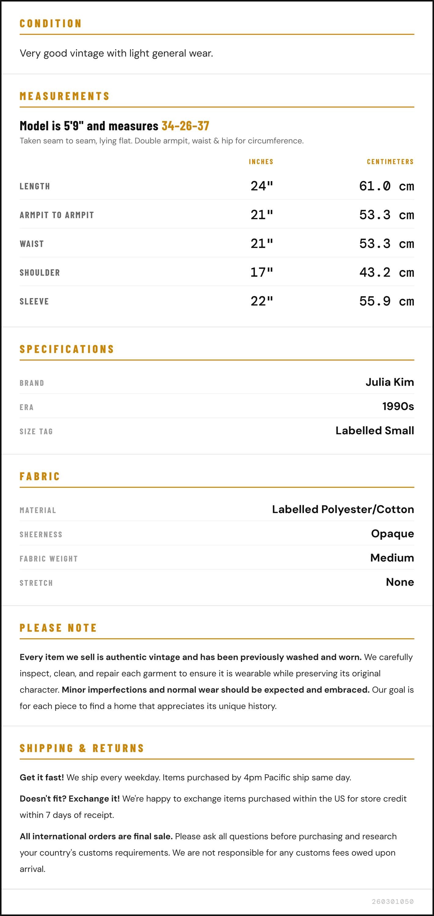✨ Please see measurements and condition below. Every garment we sell is authentic vintage and one-of-a-kind! You will receive the exact item photographed.
