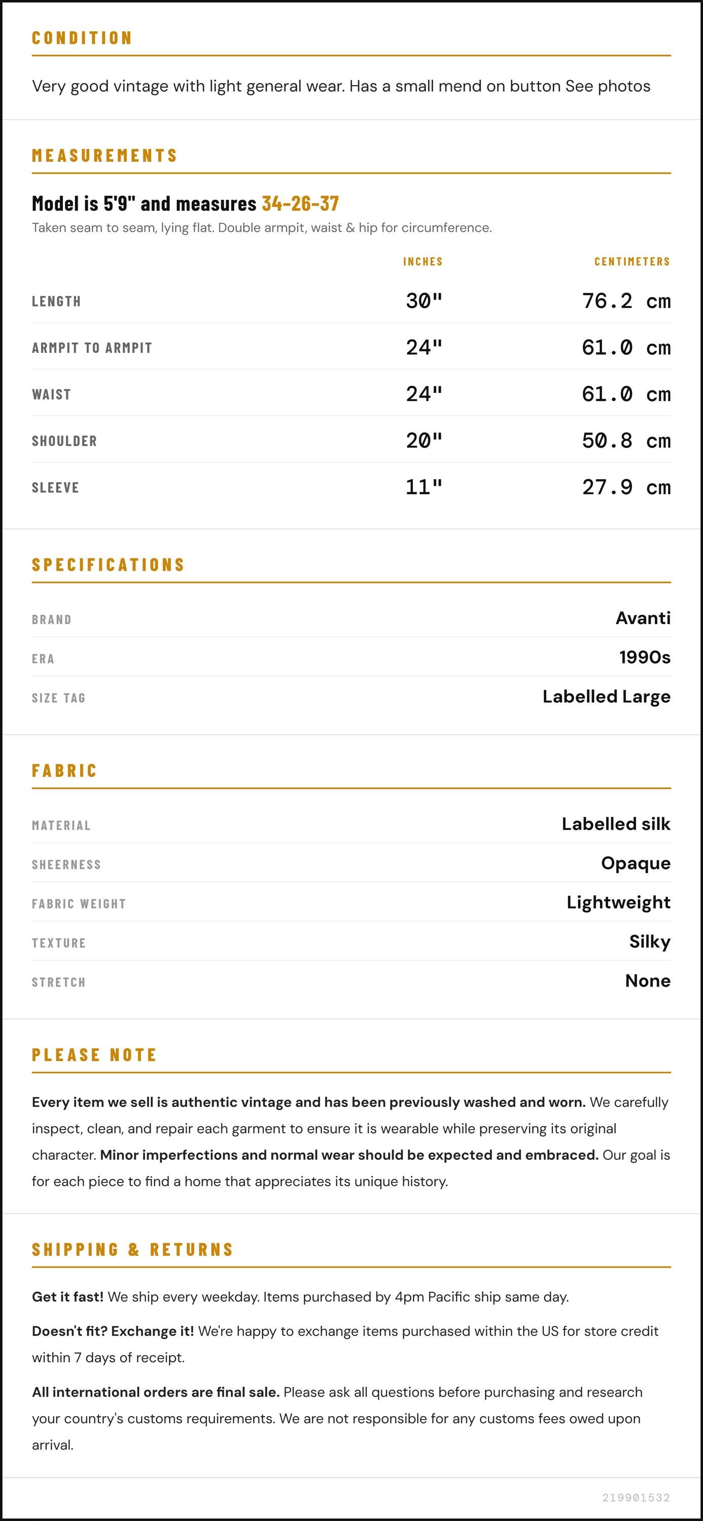Measurements are taken laying flat and should be doubled where applicable. The "best fits" size is just an estimate, and vintage sizing can vary from modern sizing. Please use measurements to ensure proper fit. The best thing to do is measure a similar item of your own, and compare. When an item has stretch, we will list the unstretched dimensions with the stretched measurement afterwards.