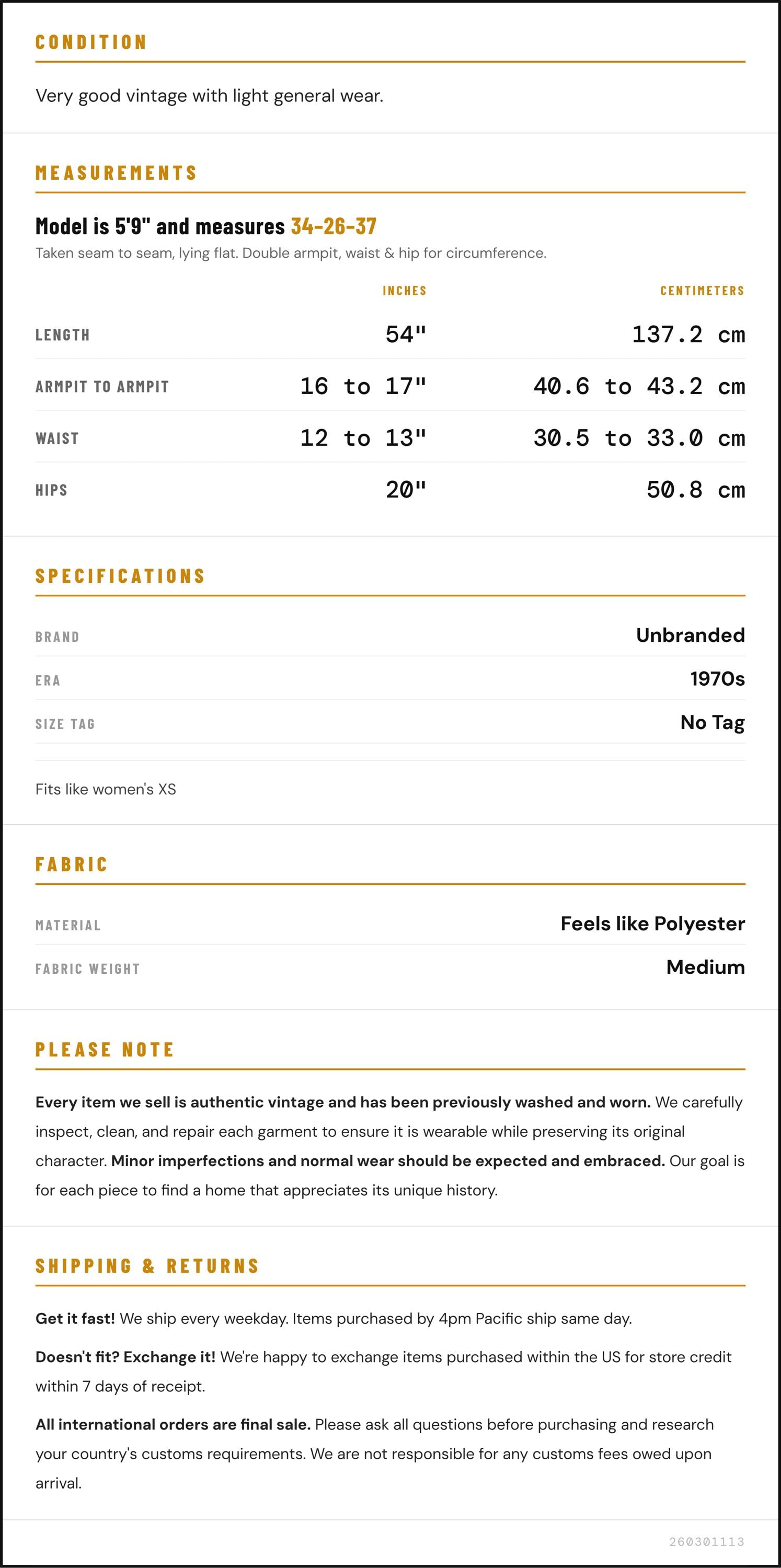 ✨ Please see measurements and condition below. Every garment we sell is authentic vintage and one-of-a-kind! You will receive the exact item photographed.