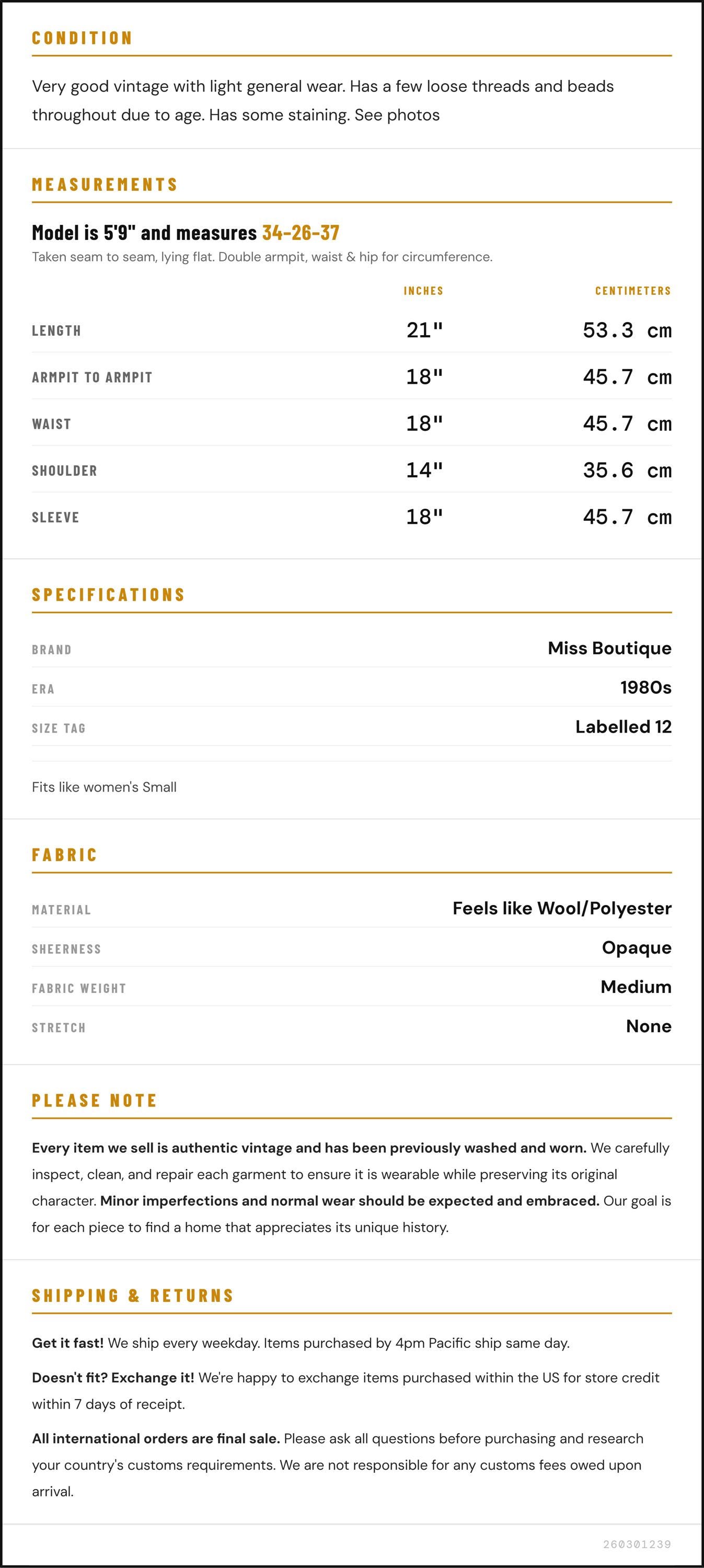 ✨ Please see measurements and condition below. Every garment we sell is authentic vintage and one-of-a-kind! You will receive the exact item photographed.