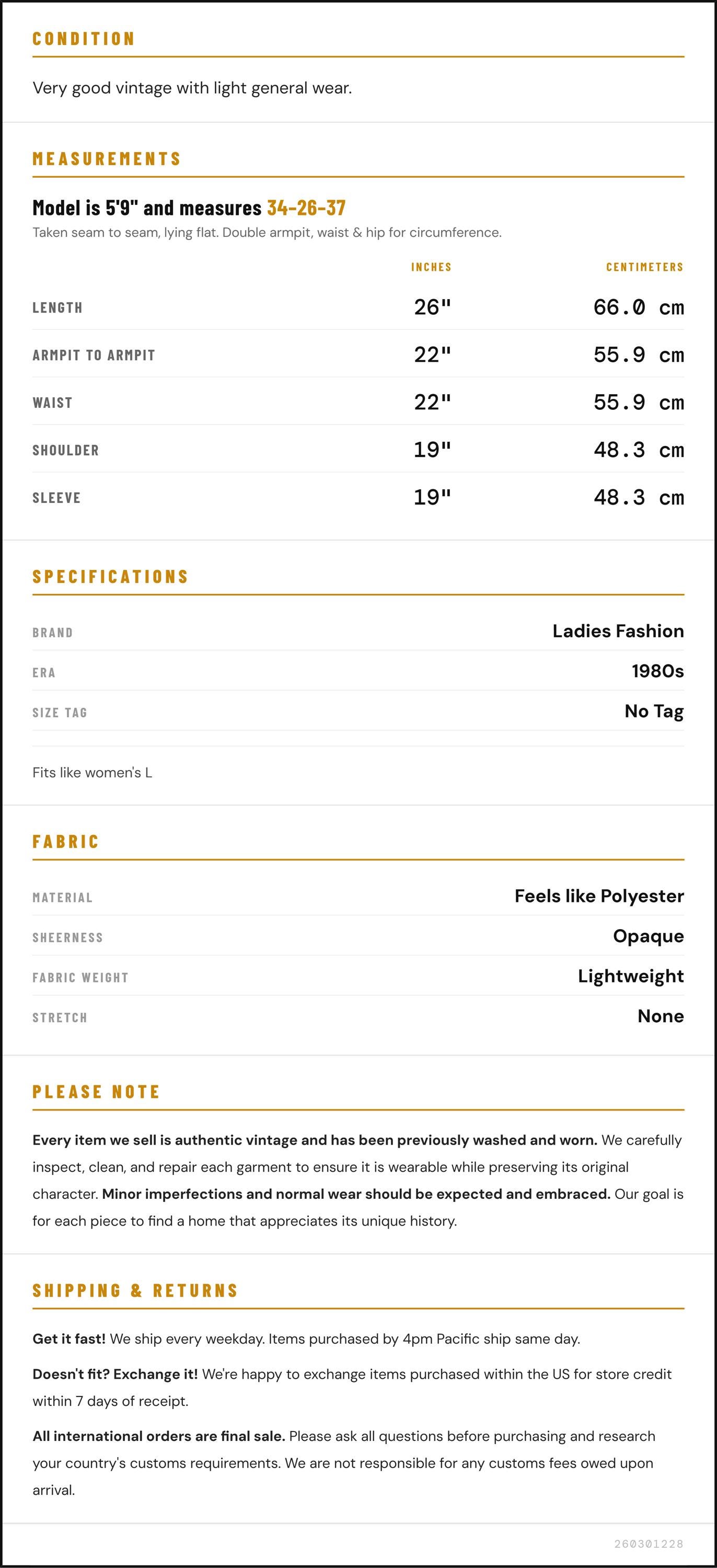 ✨ Please see measurements and condition below. Every garment we sell is authentic vintage and one-of-a-kind! You will receive the exact item photographed.