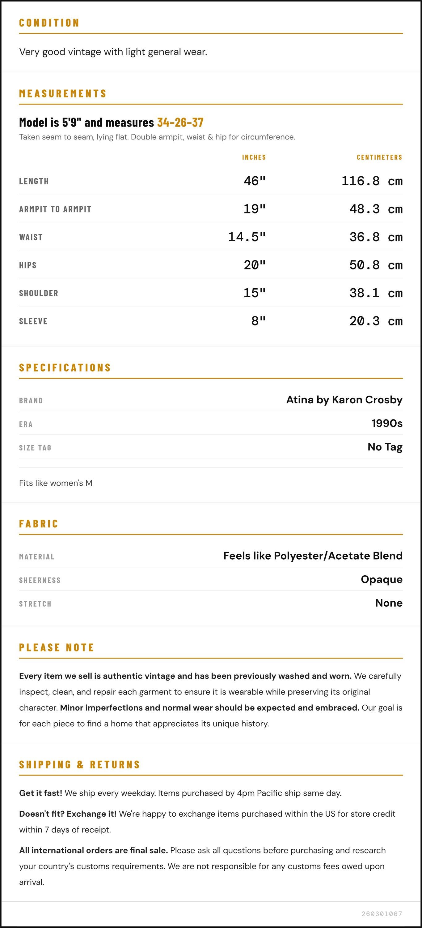 ✨ Please see measurements and condition below. Every garment we sell is authentic vintage and one-of-a-kind! You will receive the exact item photographed.