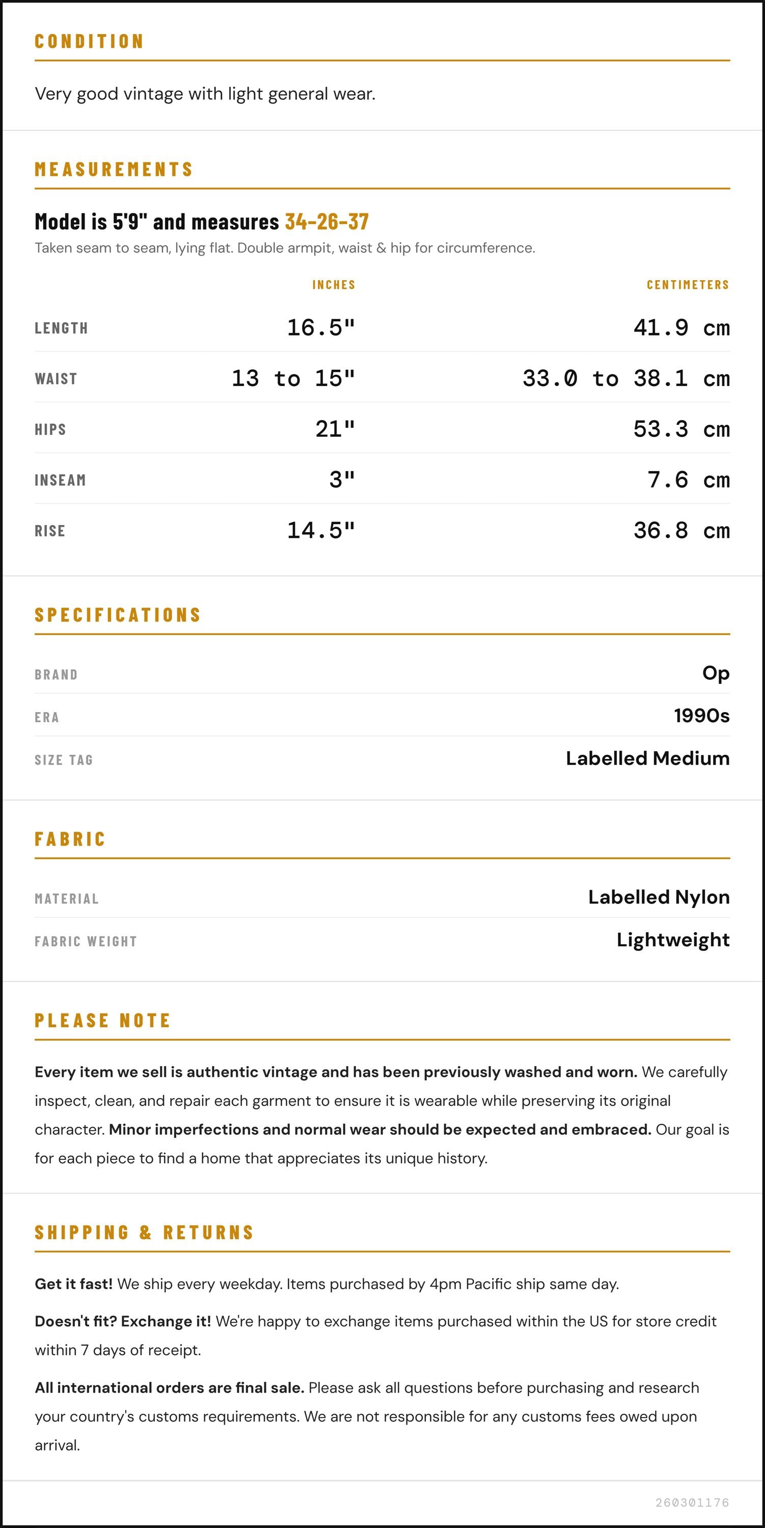 Vintage denim was usually made without any stretch, unlike modern jeans. Check the measurements to ensure proper fit, and remember to give yourself a little wiggle room in the waist and hips, depending on your preferred fit.