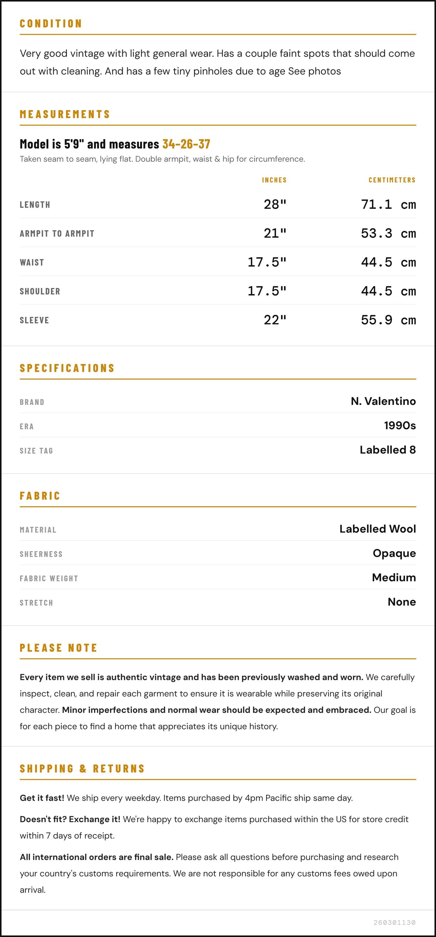 Condition: Very good vintage with light general wear. Has a couple faint spots that should come out with cleaning. And has a few tiny pinholes due to age See photos