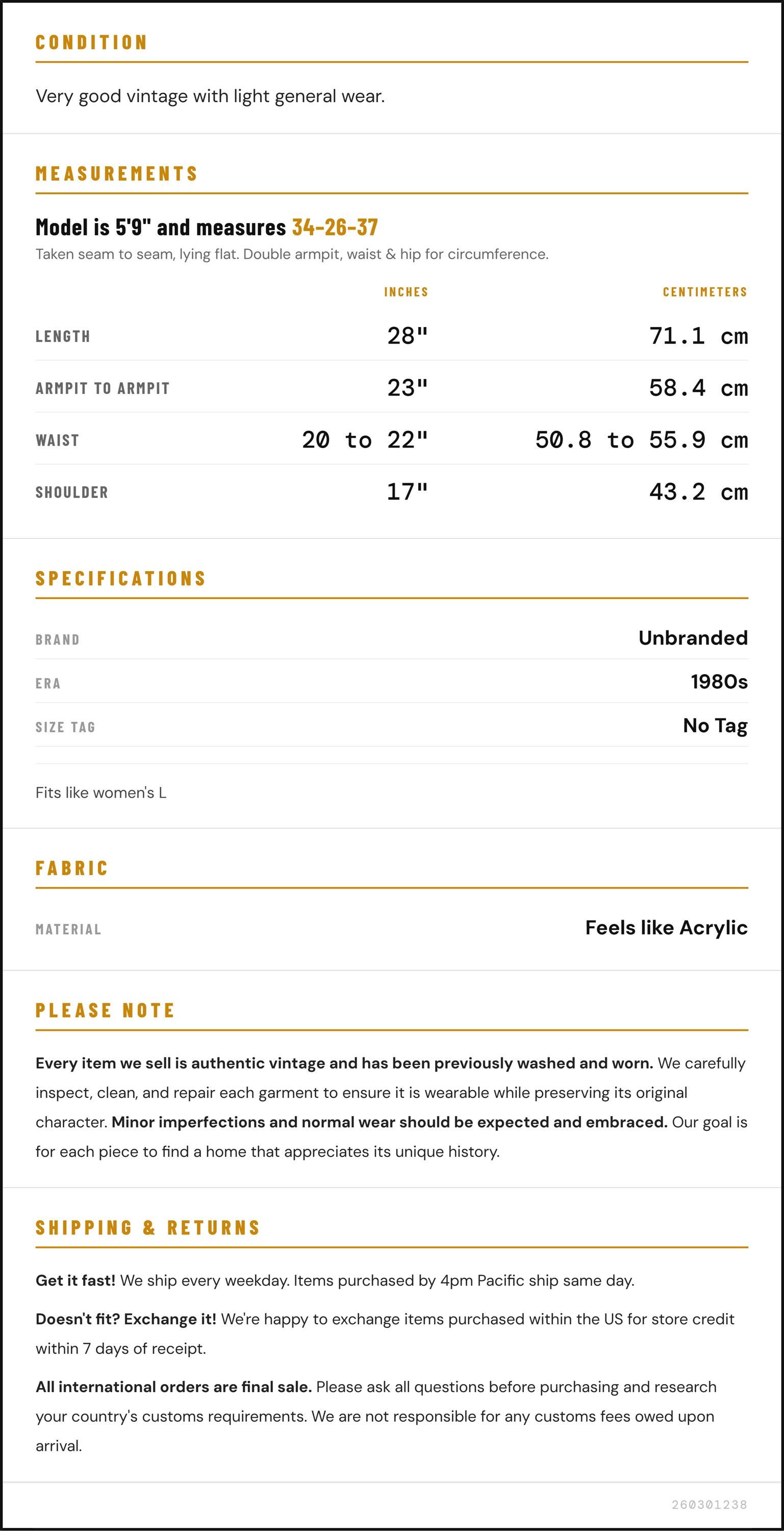 ✨ Please see measurements and condition below. Every garment we sell is authentic vintage and one-of-a-kind! You will receive the exact item photographed.