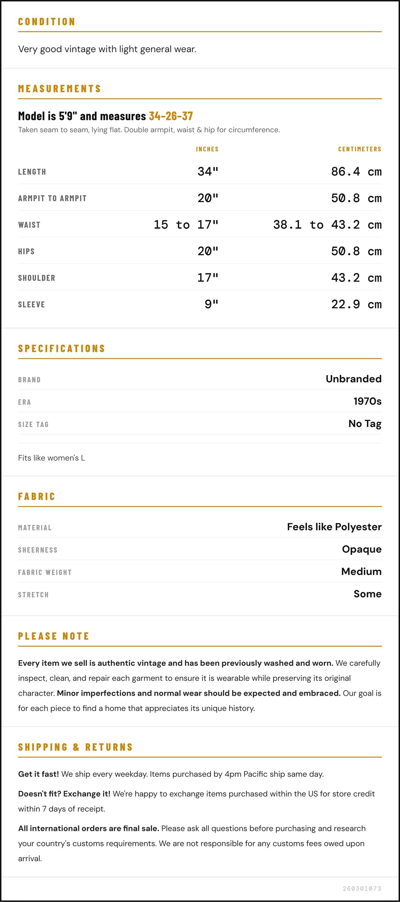 Measurements are taken laying flat and should be doubled where applicable. The "best fits" size is just an estimate, and vintage sizing can vary from modern sizing. Please use measurements to ensure proper fit. The best thing to do is measure a similar item of your own, and compare. When an item has stretch, we will list the unstretched dimensions with the stretched measurement afterwards.
