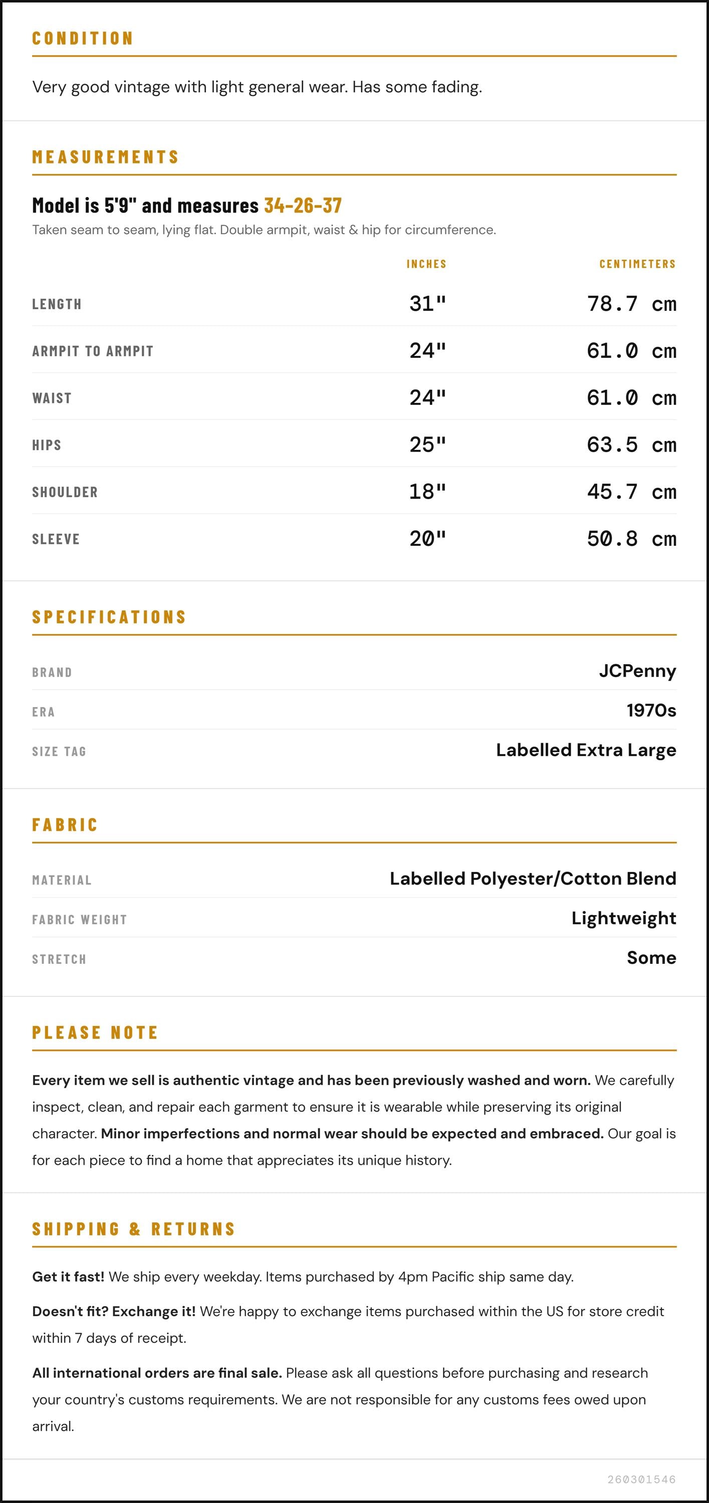 ✨ Please see measurements and condition below. Every garment we sell is authentic vintage and one-of-a-kind! You will receive the exact item photographed.