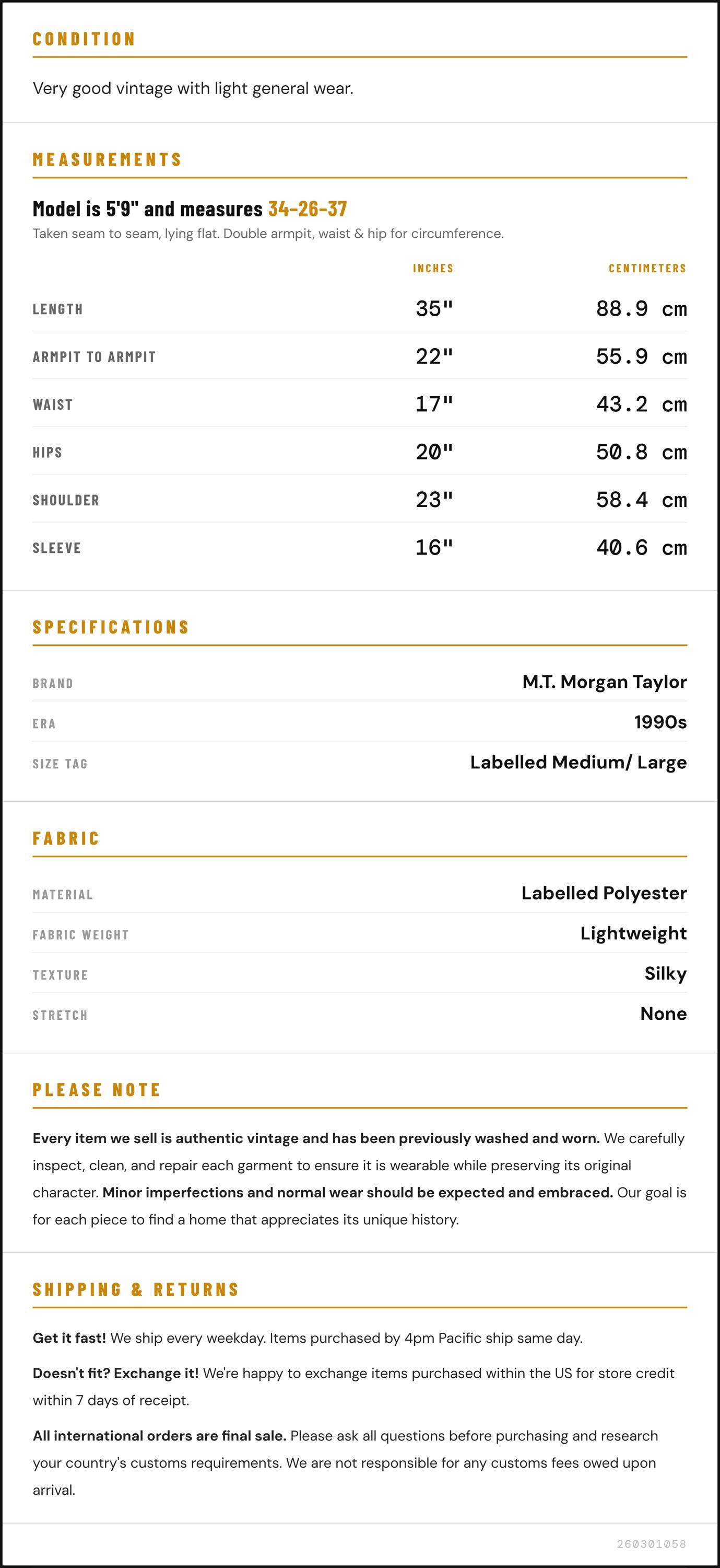 Measurements are taken laying flat and should be doubled where applicable. The "best fits" size is just an estimate, and vintage sizing can vary from modern sizing. Please use measurements to ensure proper fit. The best thing to do is measure a similar item of your own, and compare. When an item has stretch, we will list the unstretched dimensions with the stretched measurement afterwards.