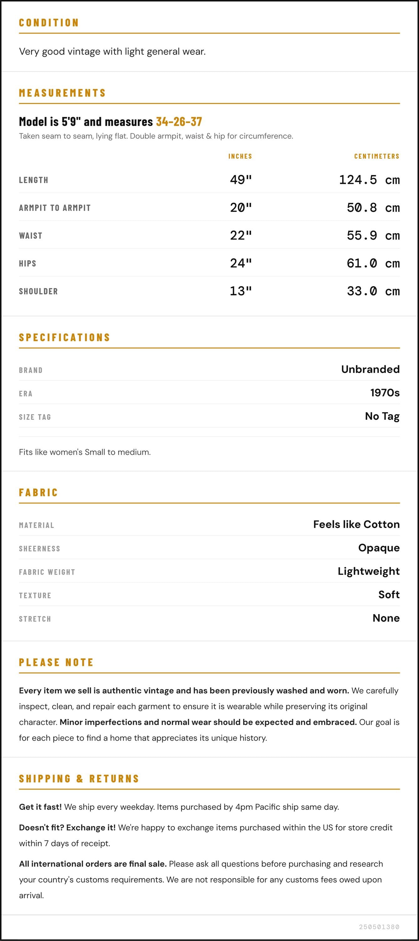 ✨ Please see measurements and condition below. Every garment we sell is authentic vintage and one-of-a-kind! You will receive the exact item photographed.