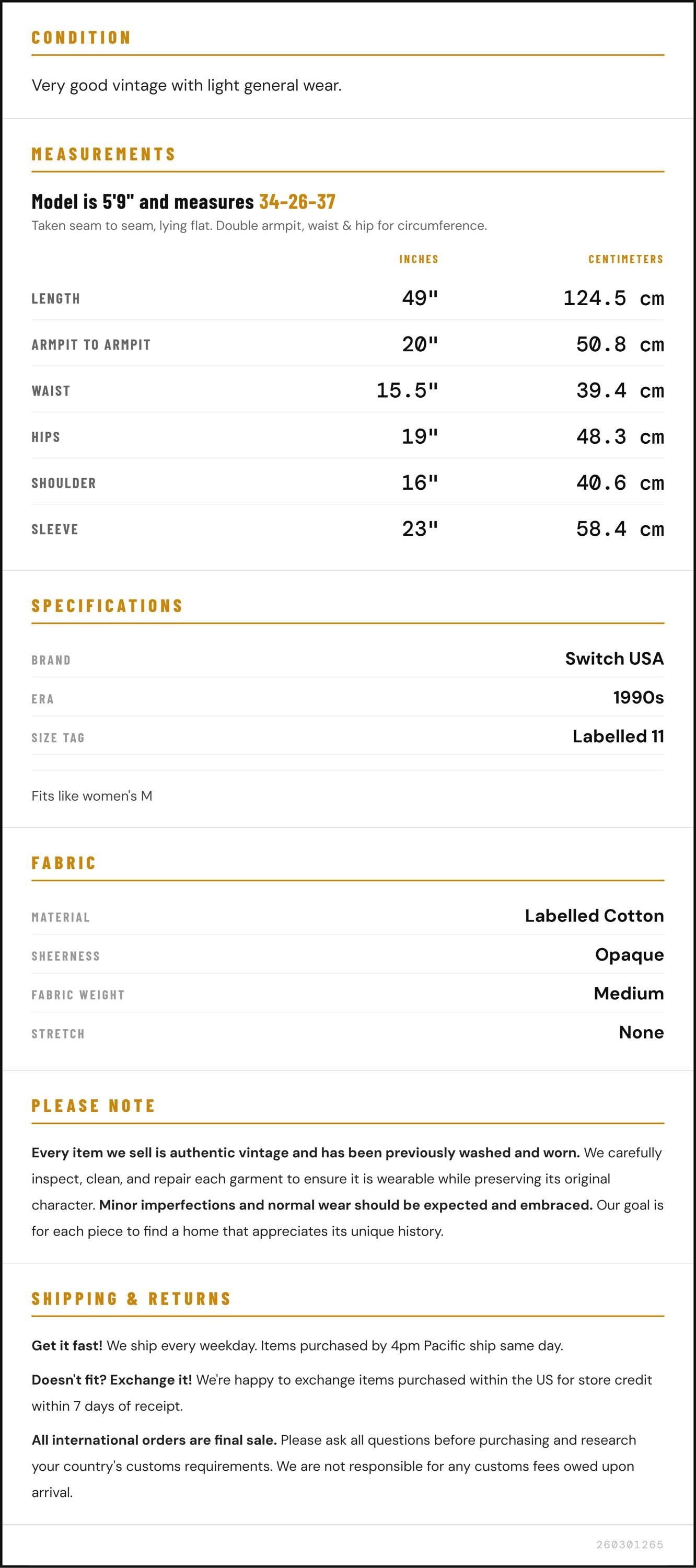 ✨ Please see measurements and condition below. Every garment we sell is authentic vintage and one-of-a-kind! You will receive the exact item photographed.