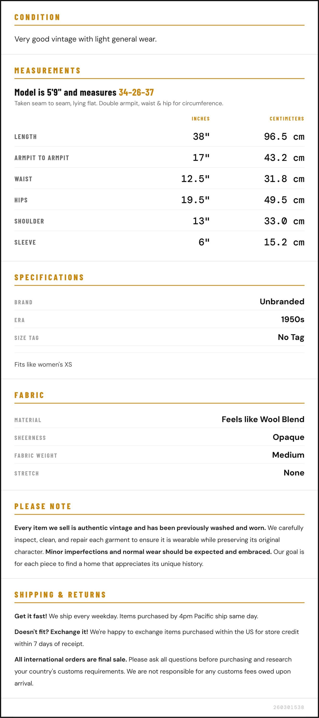 ✨ Please see measurements and condition below. Every garment we sell is authentic vintage and one-of-a-kind! You will receive the exact item photographed.