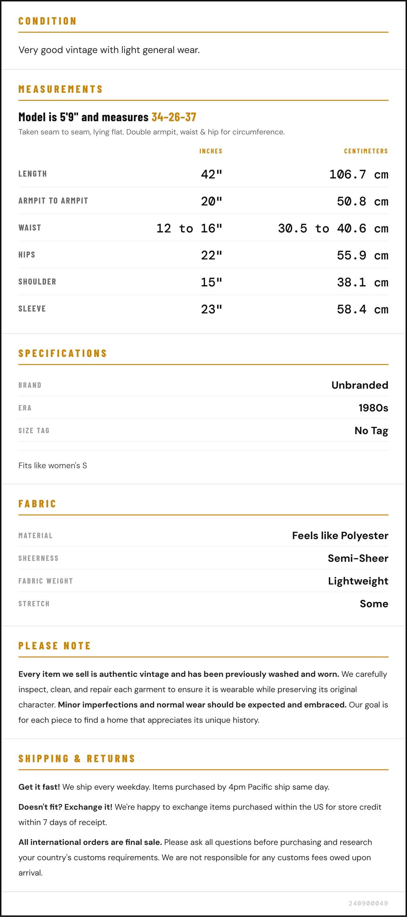 ✨ Please see measurements and condition below. Every garment we sell is authentic vintage and one-of-a-kind! You will receive the exact item photographed.