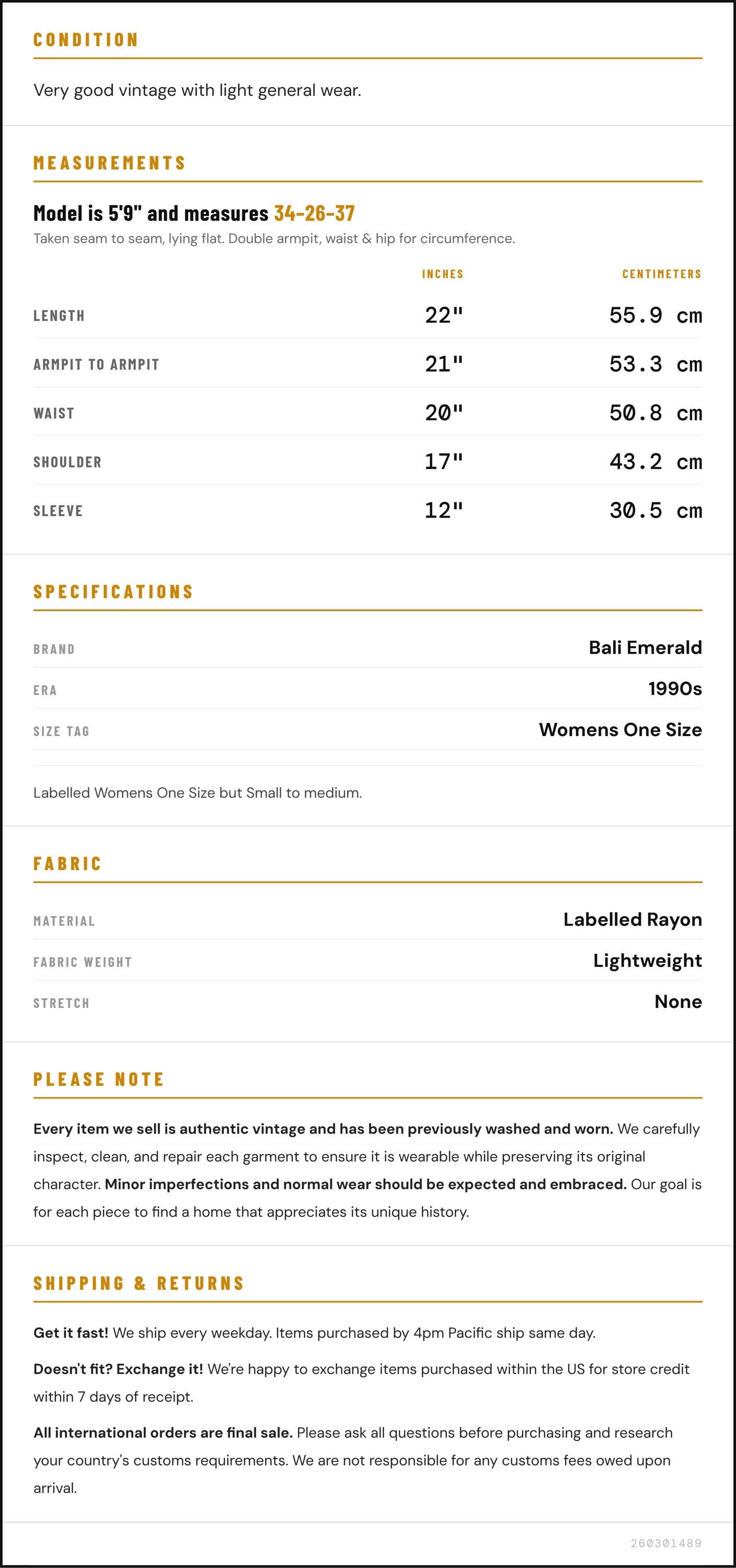 ✨ Please see measurements and condition below. Every garment we sell is authentic vintage and one-of-a-kind! You will receive the exact item photographed.