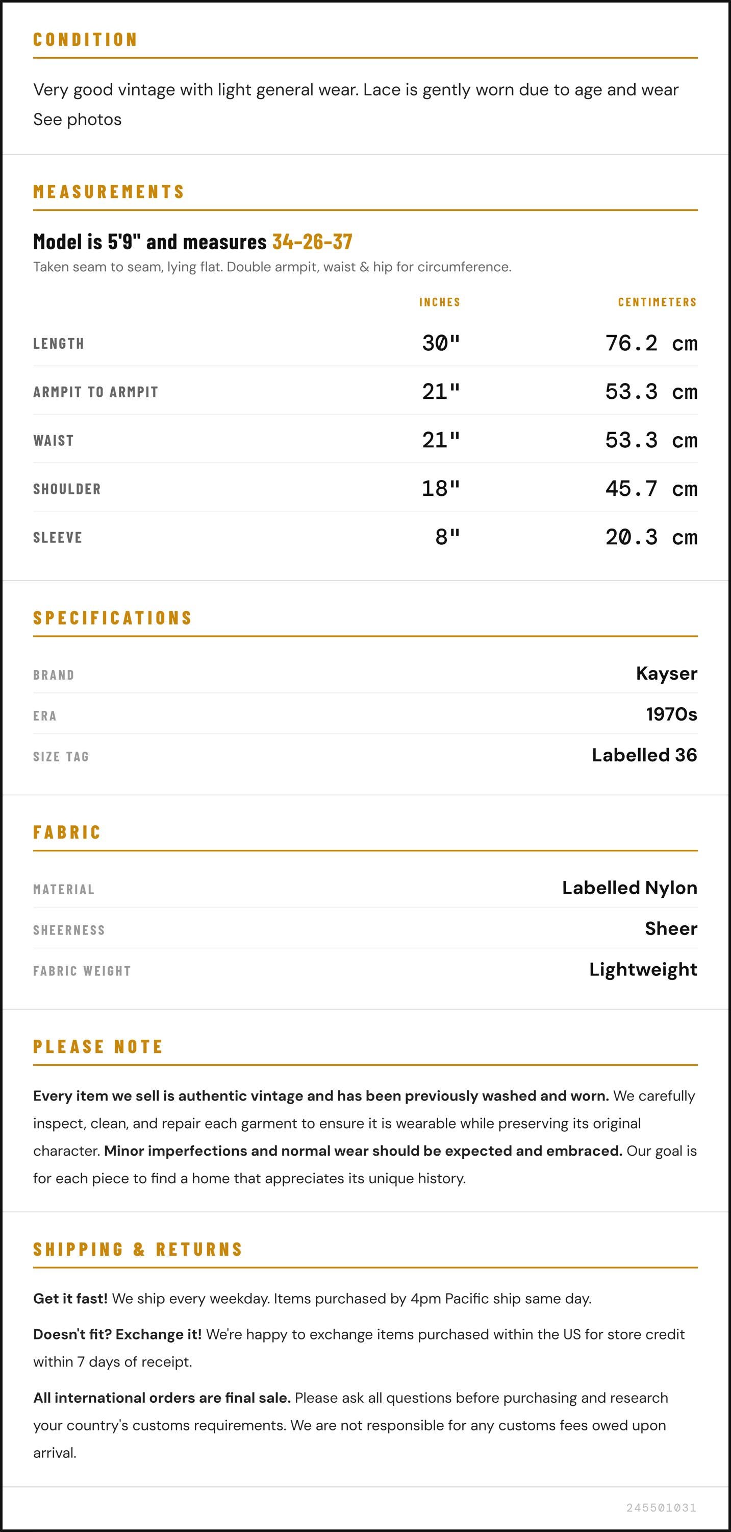 Condition: Very good vintage with light general wear. Lace is gently worn due to age and wear See photos