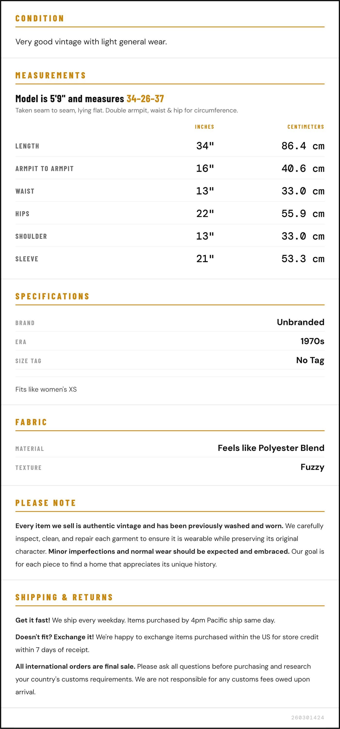 ✨ Please see measurements and condition below. Every garment we sell is authentic vintage and one-of-a-kind! You will receive the exact item photographed.