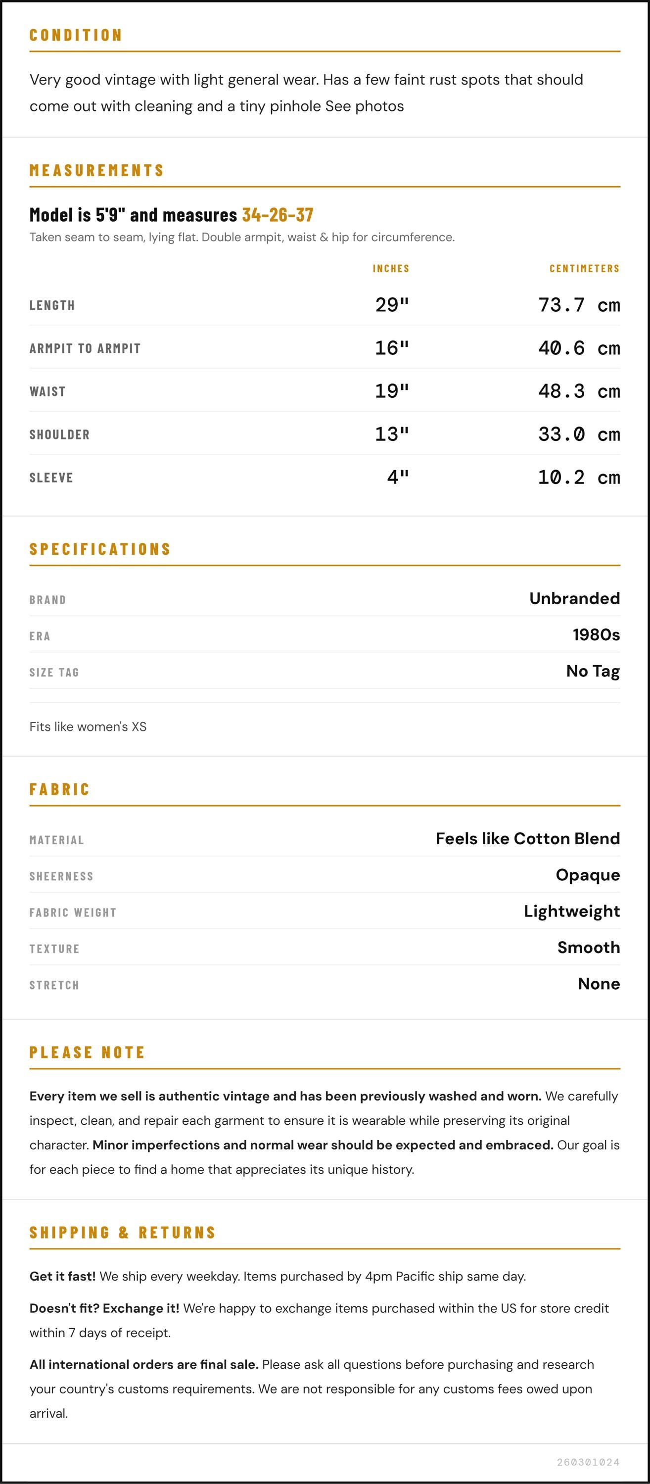 ✨ Please see measurements and condition below. Every garment we sell is authentic vintage and one-of-a-kind! You will receive the exact item photographed.