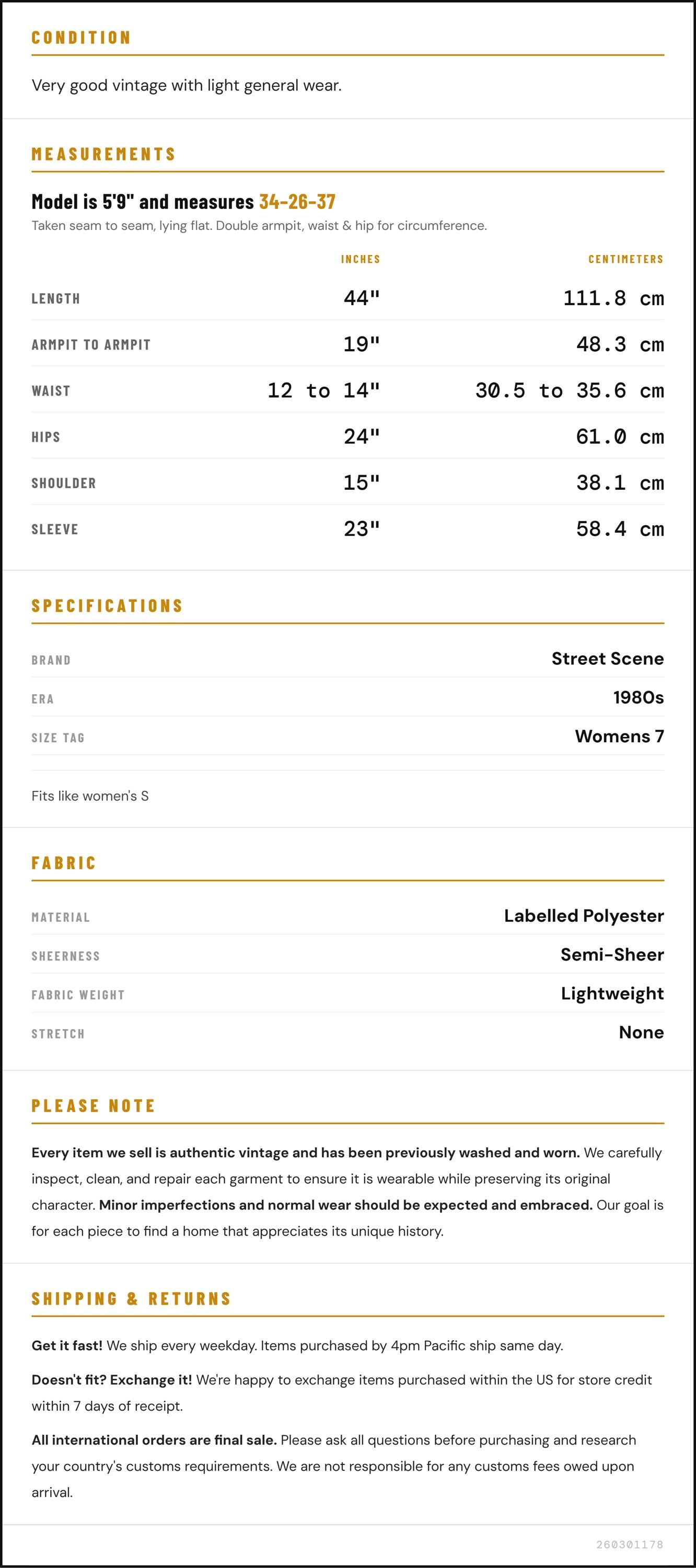 ✨ Please see measurements and condition below. Every garment we sell is authentic vintage and one-of-a-kind! You will receive the exact item photographed.